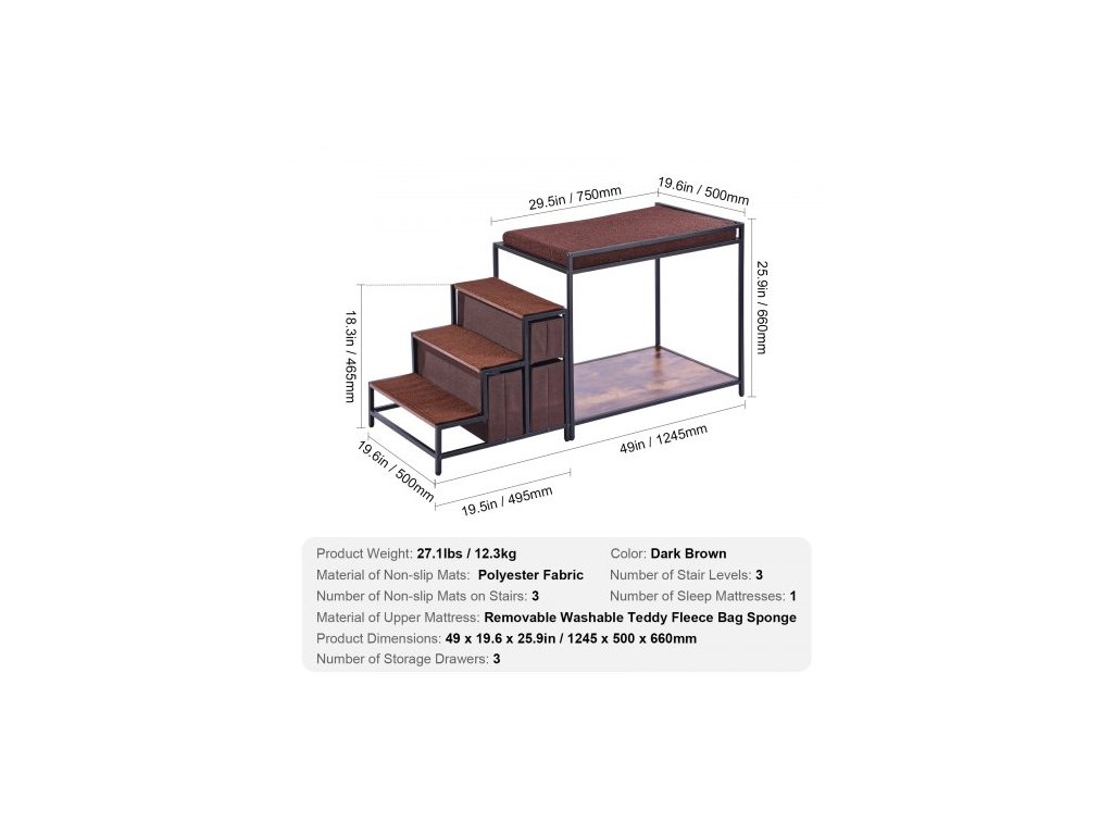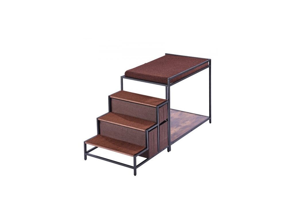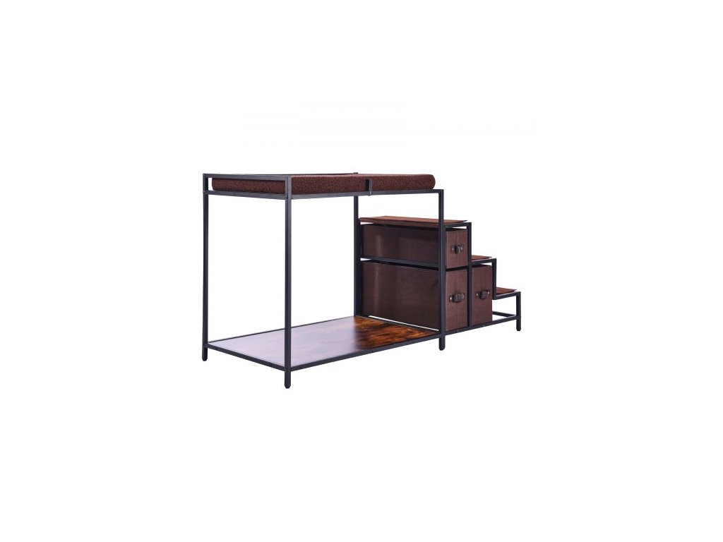 Počet matrací na spaní: 1,Počet úrovní schodů: 3,Materiál protiskluzových podložek: Polyesterová tkanina,Barva: Kov: Černá, Dřevo: Tmavě hnědá,Číslo modelu položky: 099-2A,Hmotnost výrobku: 27,1 liber / 12,3 kg,Specifikace: Střední,Rozměry výrobku (D x Š x V): 49x19,6x25,9 palce / 1245x500x660 mm,Počet protiskluzových podložek na schodech: 3,Počet úložných zásuvek: 3, Materiál horní matrace: Vyjímatelný pratelný plyšový fleecový sáček