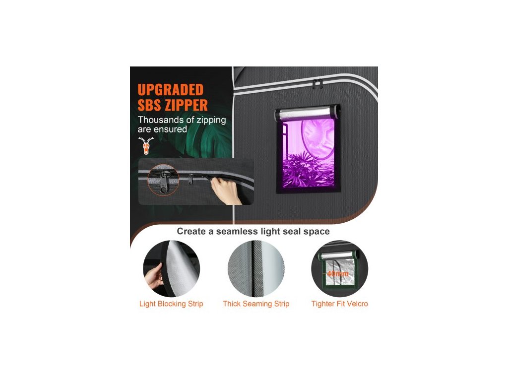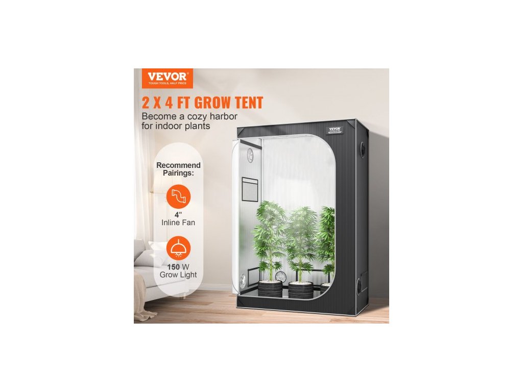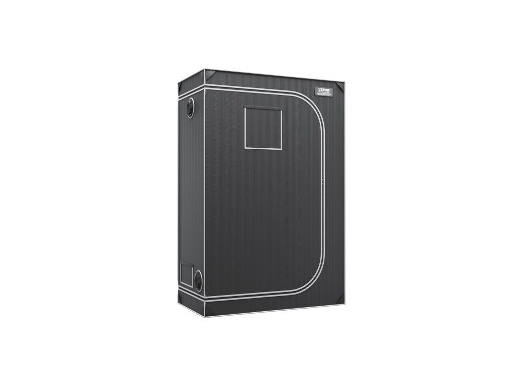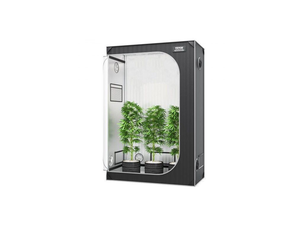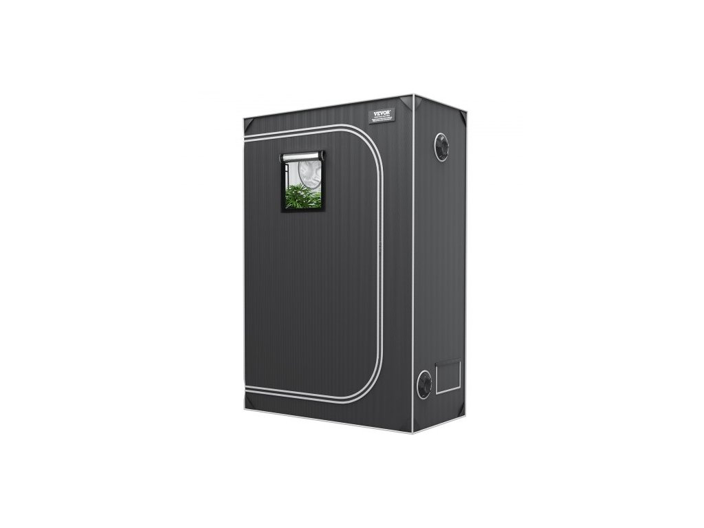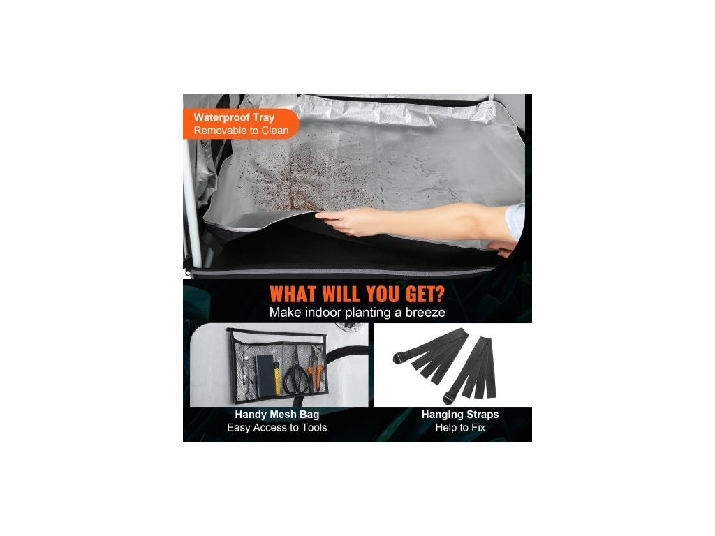 Pěstební stan 2x4, 122 x 61 x 183 cm, vysoce reflexní hydroponický pěstební stan z mylaru 2000D s pozorovacím okénkem, brašnou na nářadí a podlahovou miskou pro pěstování pokojových rostlin.