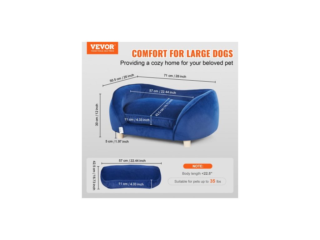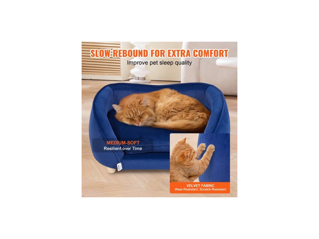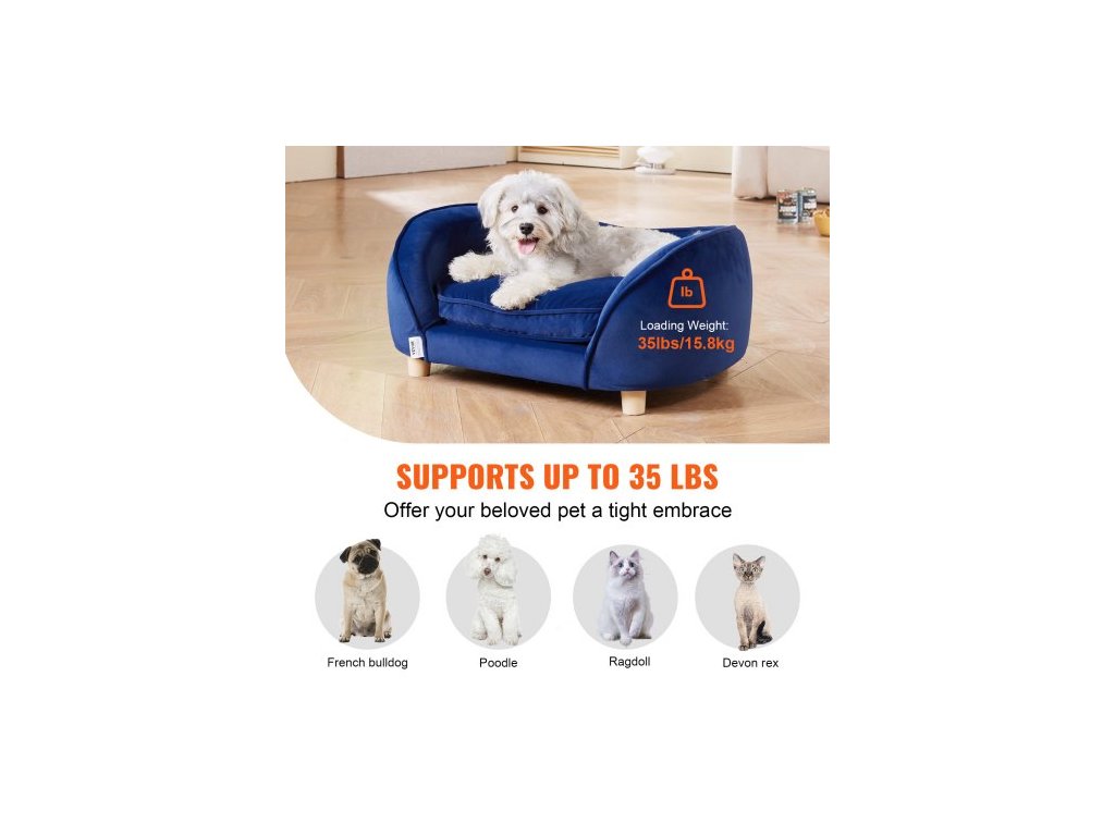 Pet Sofa, psí lehátko pro středně velké psy a kočky, měkká sametová rozkládací pohovka pro psy, nosnost 36 kg, kočičí pohovka, tmavě modrá