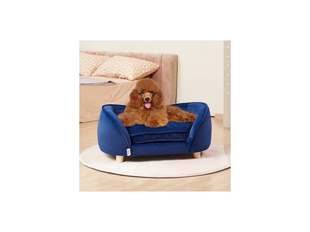 Pet Sofa, psí lehátko pro středně velké psy a kočky, měkká sametová rozkládací pohovka pro psy, nosnost 37 kg, tmavě modráSametová látka