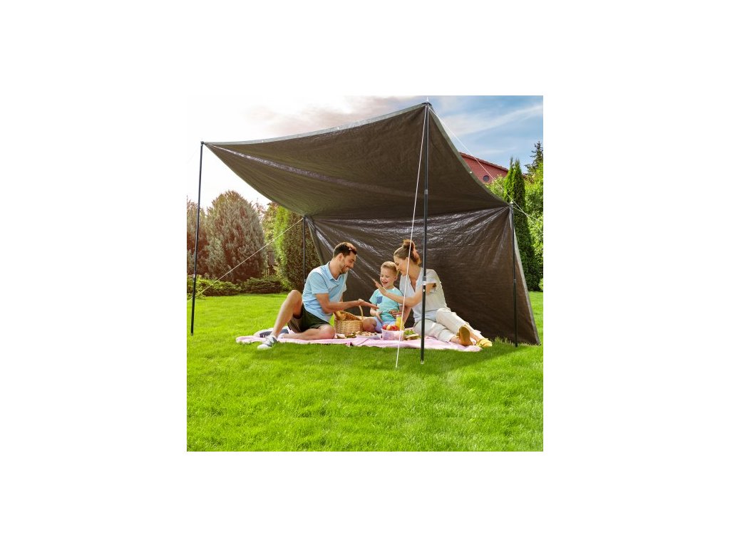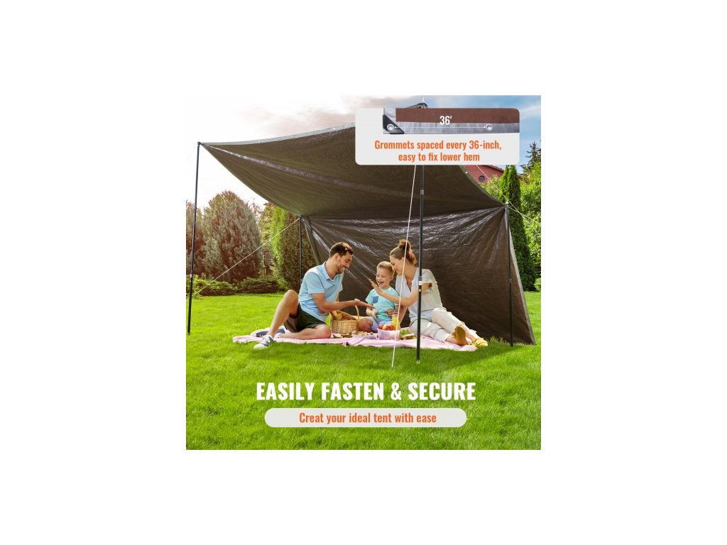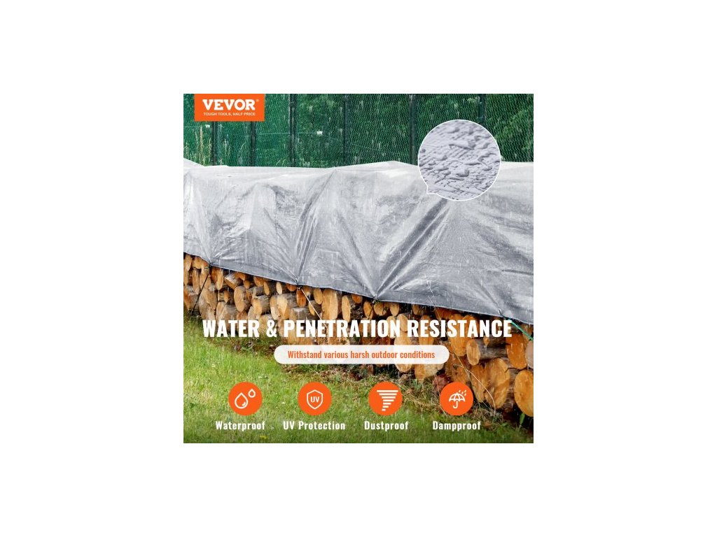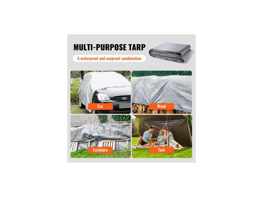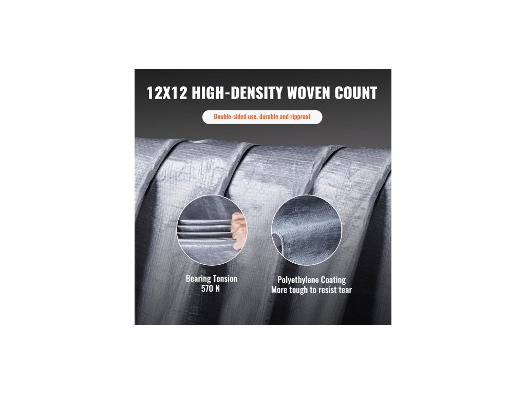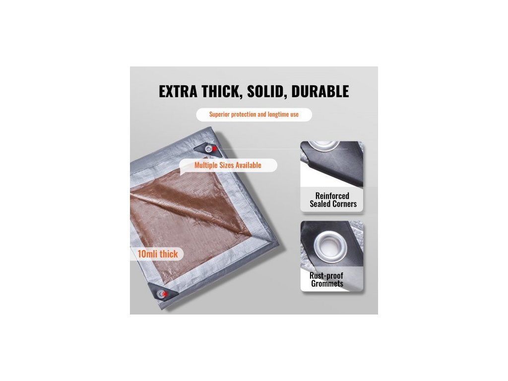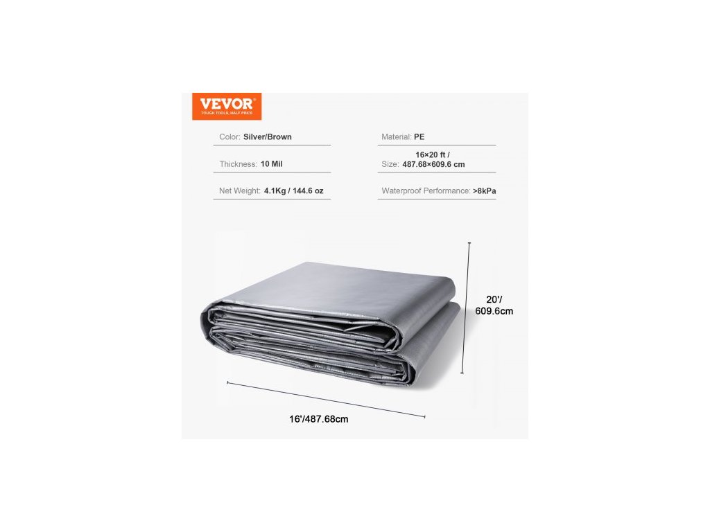 Plachta Voděodolná 487,7 x 609,6 cm, Plastový polyetylenový potah 0,25 mm, Víceúčelová venkovní plachta odolná proti roztržení, UV záření a teplotám s vysoce odolnými vyztuženými průchodkami (stříbrná/hnědá)Vyztužené utěsněné rohy
