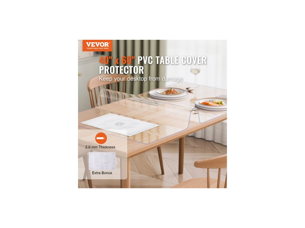 Plastový kryt na stůl , 40 x 60 palců, tloušťka 2,0 mm, průhledný chránič stolu, obdélníková PVC podložka na stůl, vodotěsný a snadno čistitelný ubrus, pro kancelářský komodu, jídelní stůl, noční stolekChraňte svůj stůl ze všech stran
