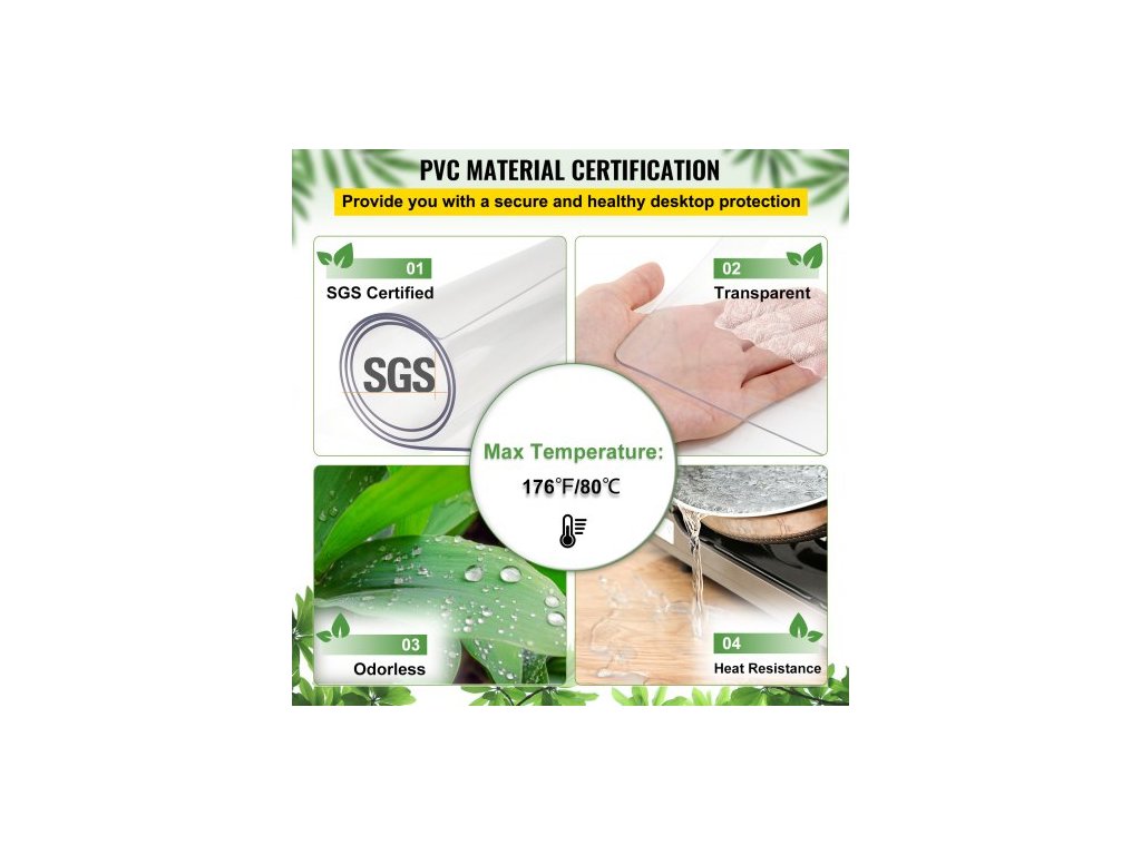 Tloušťka: 2 mm,Tvar: Obdélník,Rozměry ubrusu: 11,8 x 18,1 palce / 30 x 46 cm,Rozměry výrobku: 36 x 60 palců / 91,4 x 152,4 cm,Maximální teplota: 80 °C/ 176 °F,Barva: Průhledná,Model: SL20-FT90153,Hmotnost výrobku: 6,6 lbs / 3 kg,Materiál: PVC
