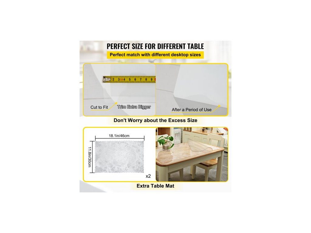 Tloušťka: 1,5 mm,Tvar: Obdélník,Rozměry ubrusu: 11,8 x 18,1 palce / 30 x 46 cm,Rozměry výrobku: 40 x 80 palců / 101,6 x 203,2 cm,Maximální teplota: 80 °C/ 176 °F,Barva: Průhledná,Model: SL15-FT102203,Hmotnost výrobku: 7,7 lbs / 3,5 kg,Materiál: PVC
