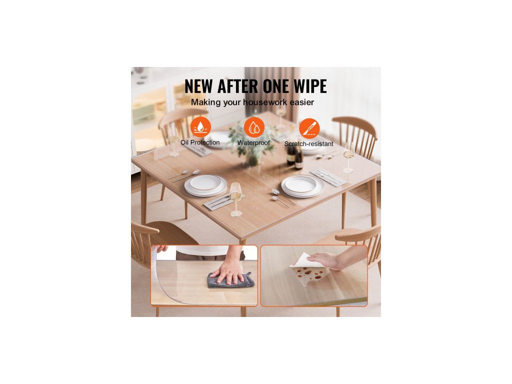 Plastový kryt na stůl , 48 x 48 palců, průhledný chránič stolu o tloušťce 1,5 mm, čtvercová PVC podložka na stůl, vodotěsný a snadno čistitelný ubrus, pro kancelářský, komodu, jídelní, noční stolekChraňte svůj stůl ze všech stran