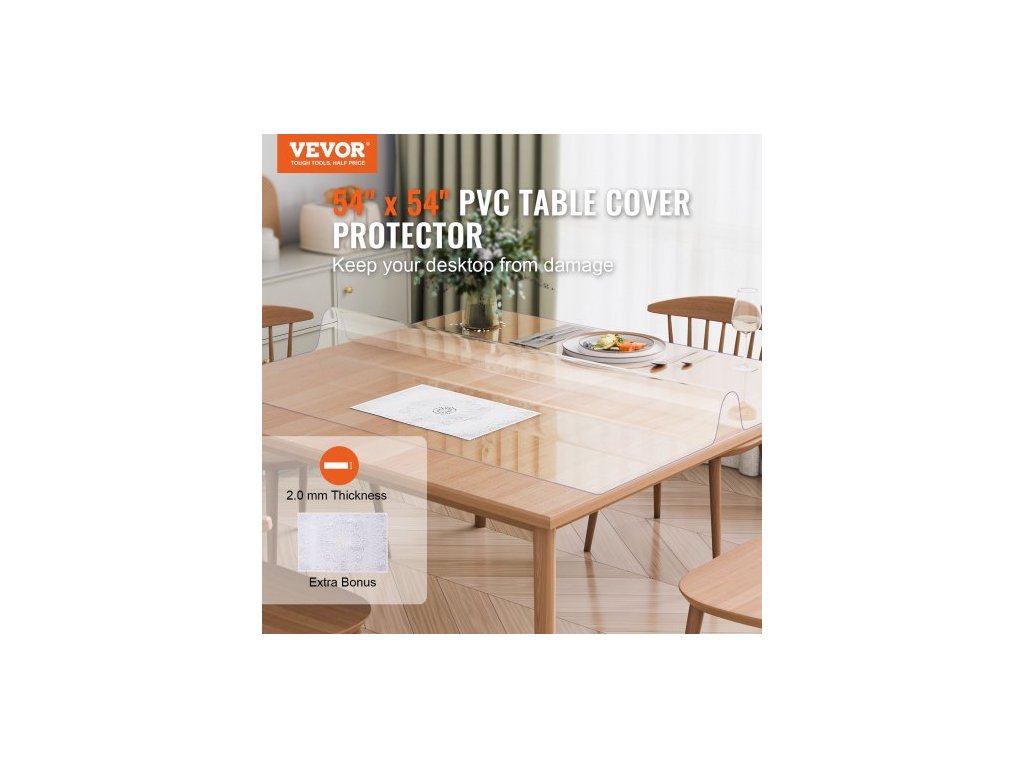 Plastový kryt na stůl , 54 x 54 palců, tloušťka 2,0 mm, průhledný chránič stolu, čtvercová PVC podložka na stůl, vodotěsný a snadno čistitelný ubrus, pro kancelářský, komodu, jídelní, noční stolekChraňte svůj stůl ze všech stran