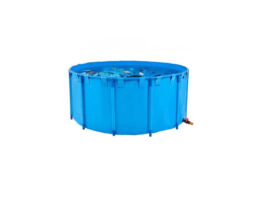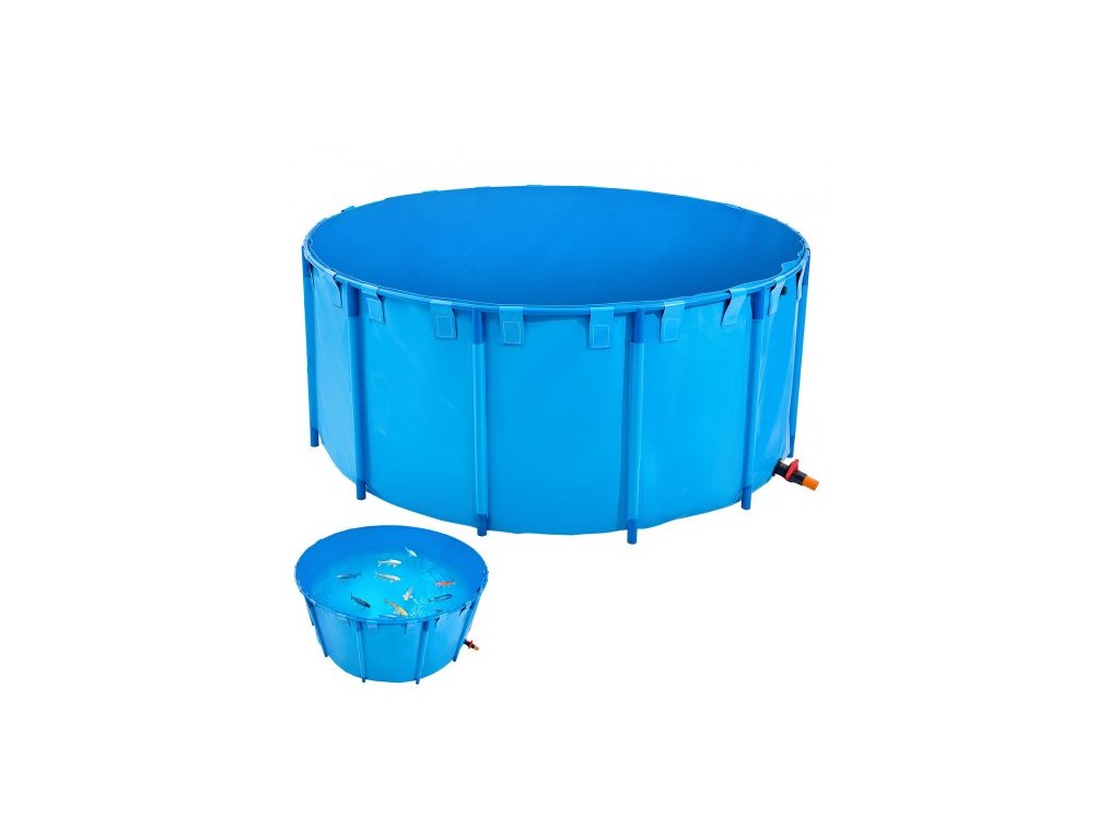 Plátěné rybníček , nadzemní objem 1320 galonů, skládací PVC nádrž na koi kapry, kulatá nádrž na zlaté rybky se stabilním rámem a vypouštěcím ventilem, pro akvakulturu, chov koi kaprů a zavlažování (modrá)Přenosné nadzemní rybníček