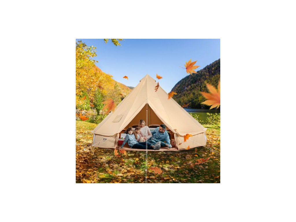 Plátěný stan , 4 roční období, jurtový stan 4 m/13,12 stop, plátěný stan pro kempování s vařičem, prodyšný stan pro až 6 osob, rodinné kempování, venkovní lovecké párty