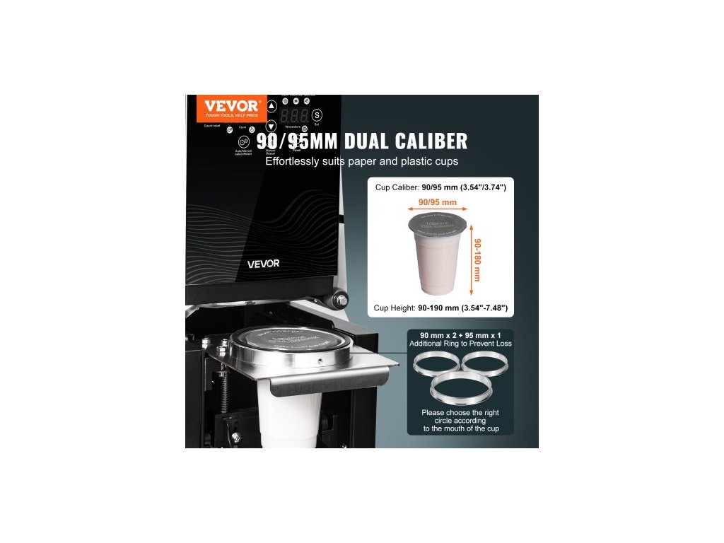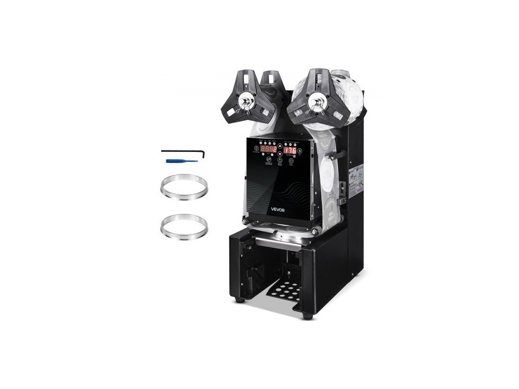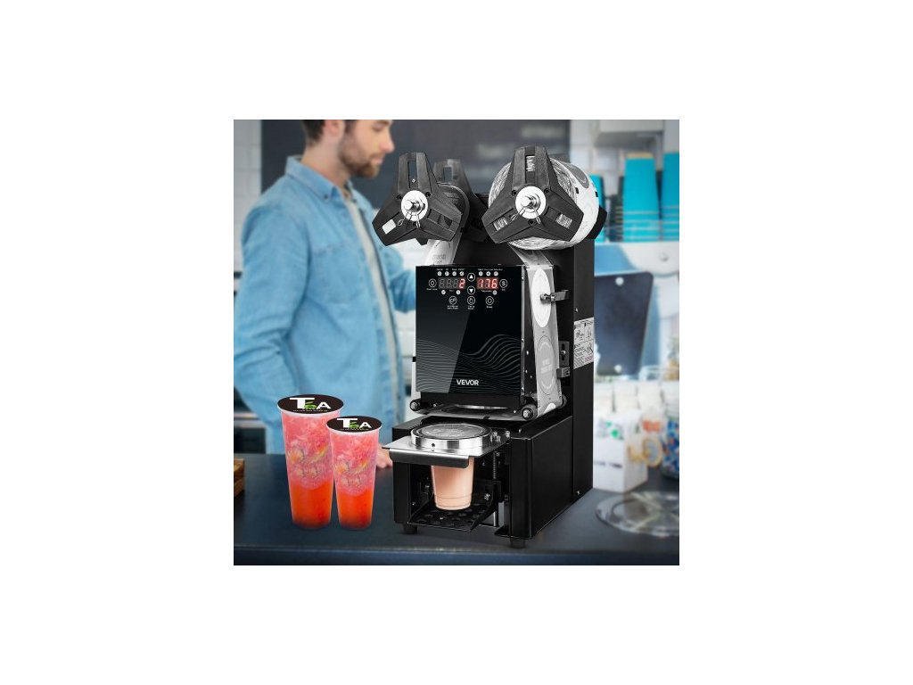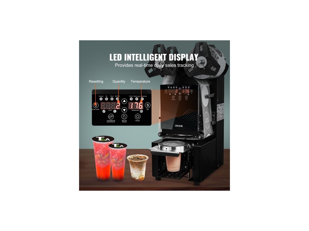 Plně automatický zavírací stroj na kelímky , 500-650 šálků/hod, zavírací stroj na kelímky o výšce 190 mm a 90/95 mm, elektrický zavírací stroj na čaj Boba s digitálním ovládáním LCD panelu pro bublinkový čaj s mlékem, černý