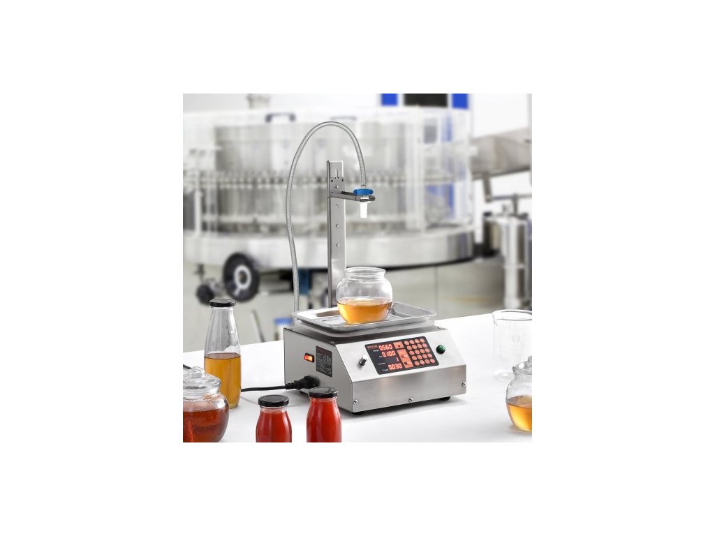 Plnicí stroj , váživost 30-15000 g, automatický plnicí stroj na lahve, digitální ovládání pro mléko, vodu, olej, víno, nápoje, prací prostředek, šampon (jedna tryska)
