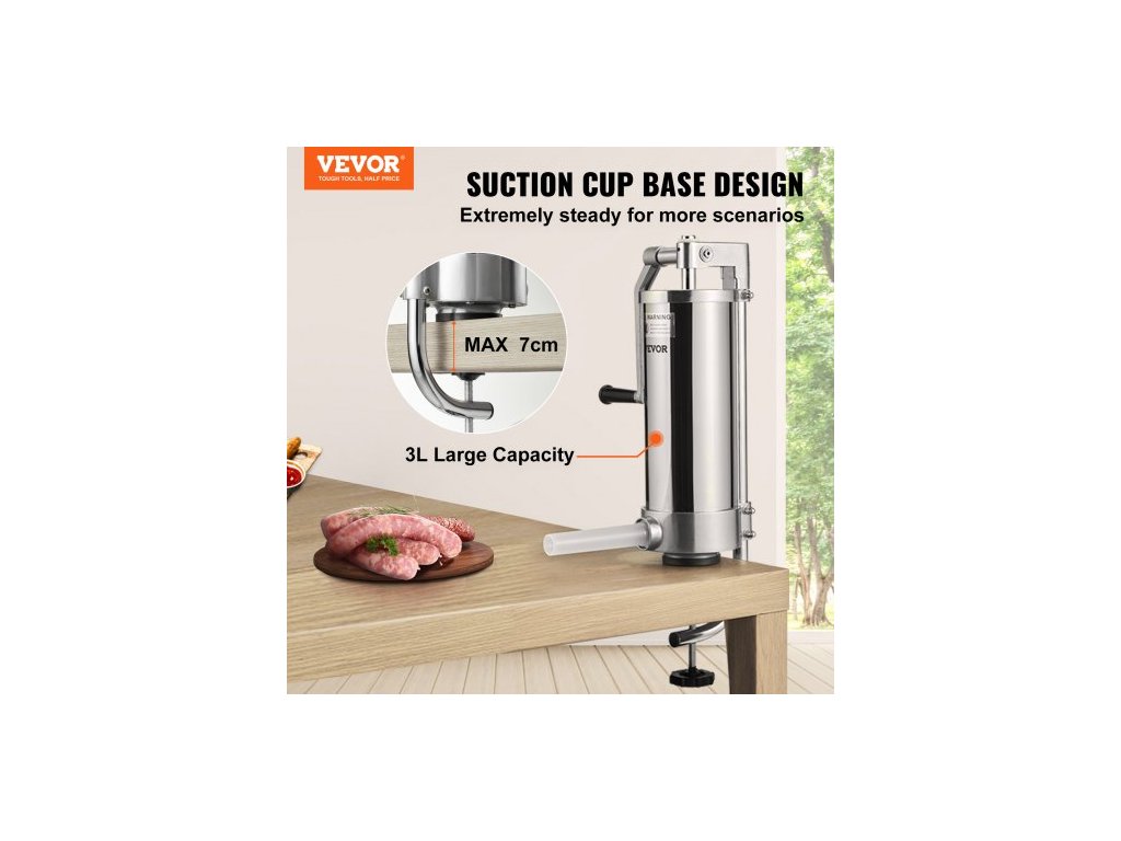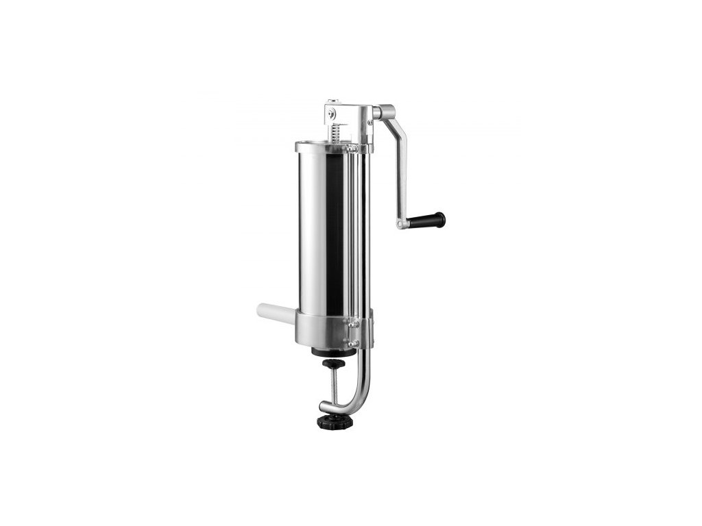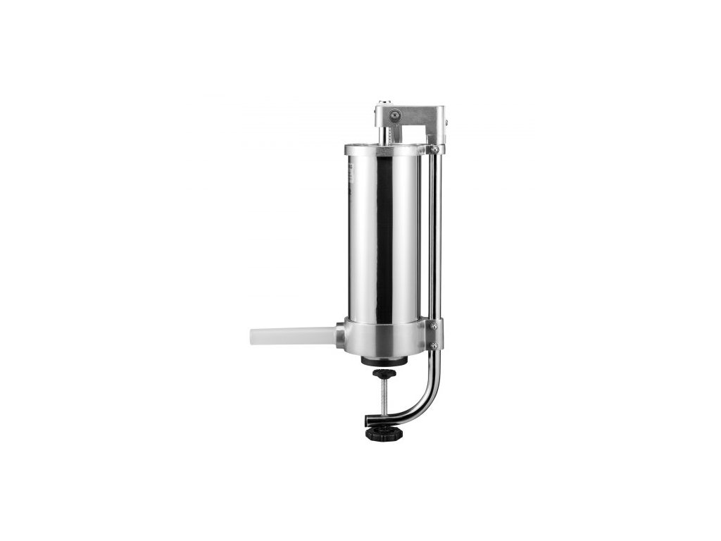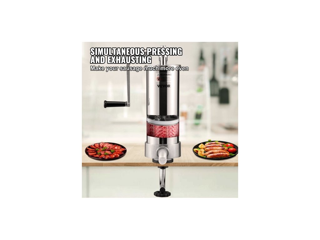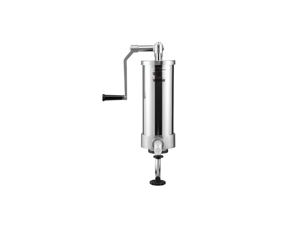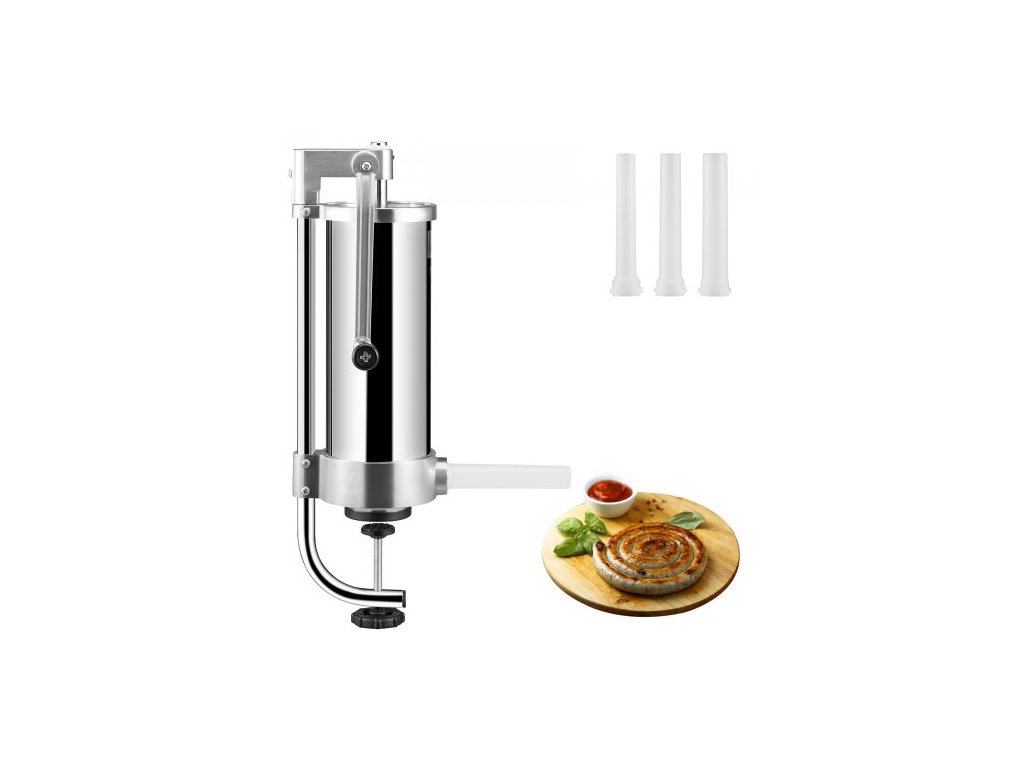 Plnička klobás , objem 3 l, vertikální plnička klobás z nerezové oceli 304, stroj na plnění klobás se 3 plnicími trubicemi, sací základnou a ruční klikou pro domácí i komerční použitíPokročilý materiál potravinářské kvality