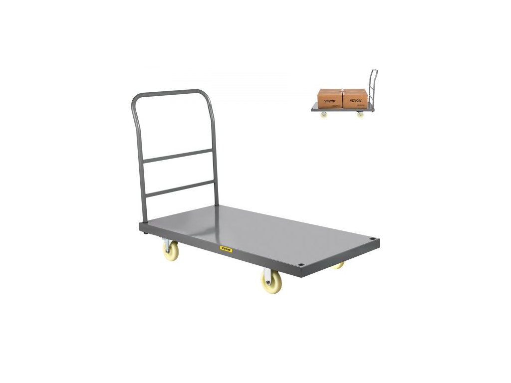 Plošinový vozík , nosnost 907,2 kg, ocelový plošinový vozík, délka 119,4 cm x šířka 61 cm x výška 81,3 cm, ruční vozík s nylonovými kolečky 12,7 cm, robustní vozíky pro přepravu zavazadel