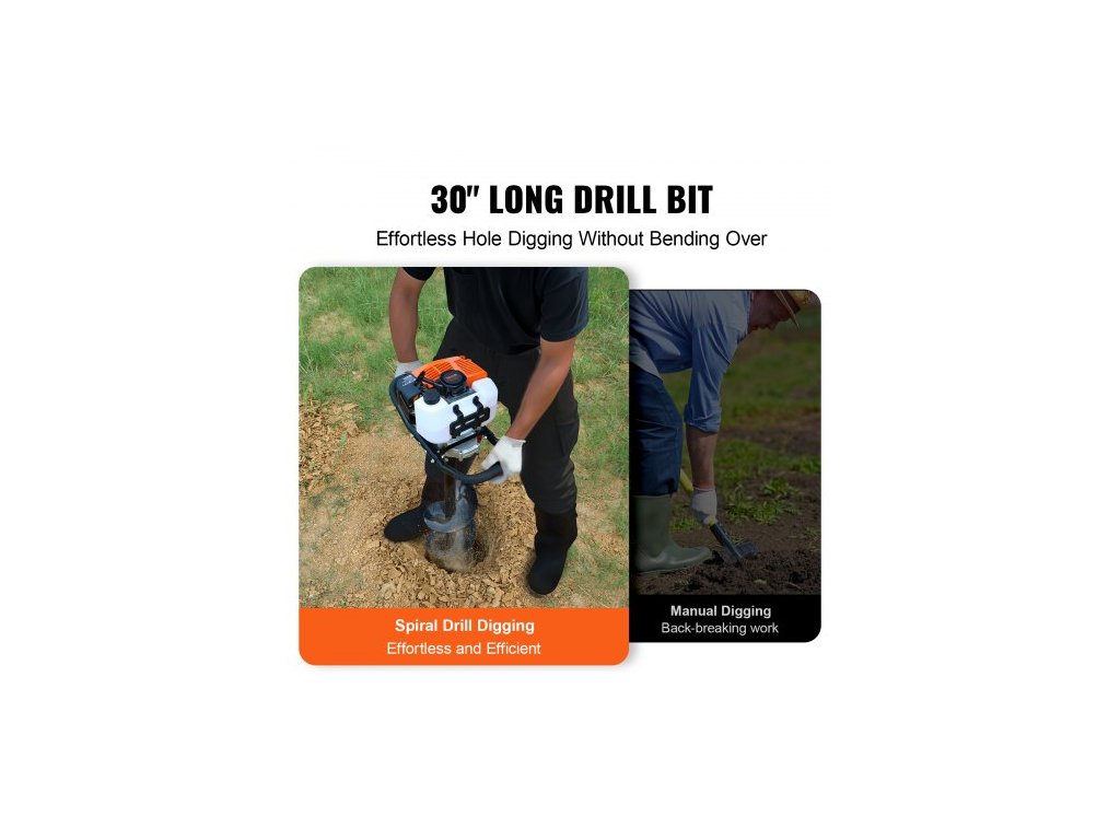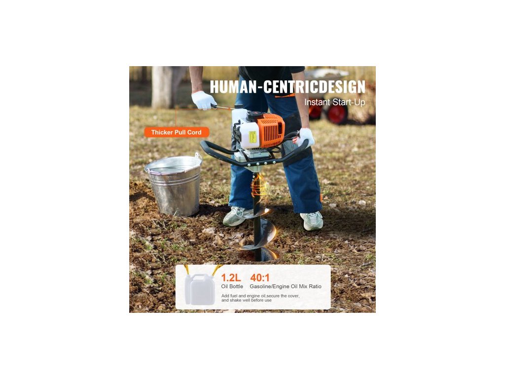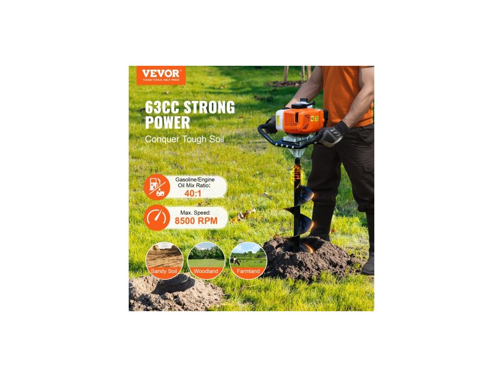 Benzínový vrták na sloupky 63CC 2400W s vrtáky 20,3 cm a 1 prodlužovací tyčíVysoký výkon