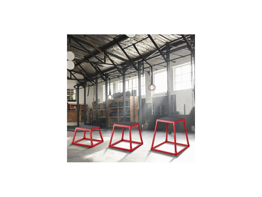 Plyometrické skákací boxy, 12/18/24 palcový plyometrický box, platforma a skákací box na agilitu, protiskluzová sada fitness boxů na cvičení pro domácí posilovnu, kondiční silový trénink, červená