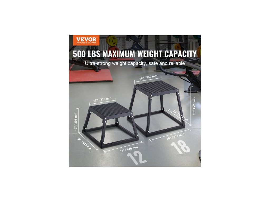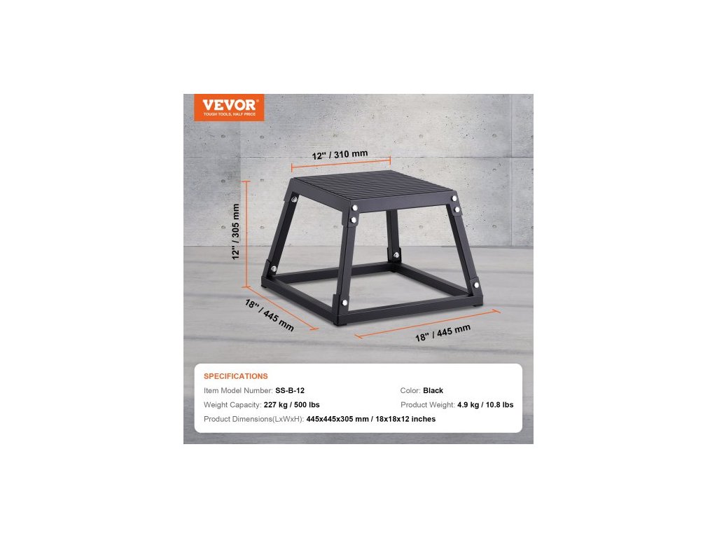 Plyometrický skákací box, 12palcový plyometrický box, ocelová plyometrická platforma a skákací box na agilitu, protiskluzový fitness cvičební box pro trénink v domácí posilovně, kondiční silový trénink, černýBěžně používaná velikost