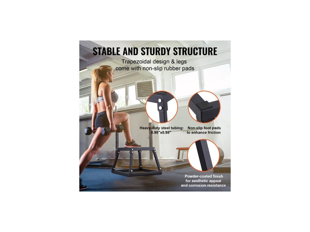 Plyometrický skákací box, 12palcový plyometrický box, ocelová plyometrická platforma a skákací box na agilitu, protiskluzový fitness cvičební box na cvičení pro domácí posilovnu, kondiční silový trénink, černý