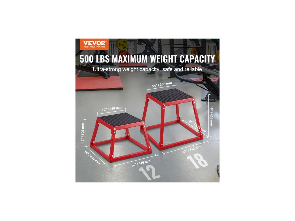 Plyometrický skákací box, 18palcový plyometrický box, ocelová plyometrická platforma a skákací box na agilitu, protiskluzový fitness cvičební box pro trénink v domácí posilovně, kondiční silový trénink, červenýBěžně používaná velikost