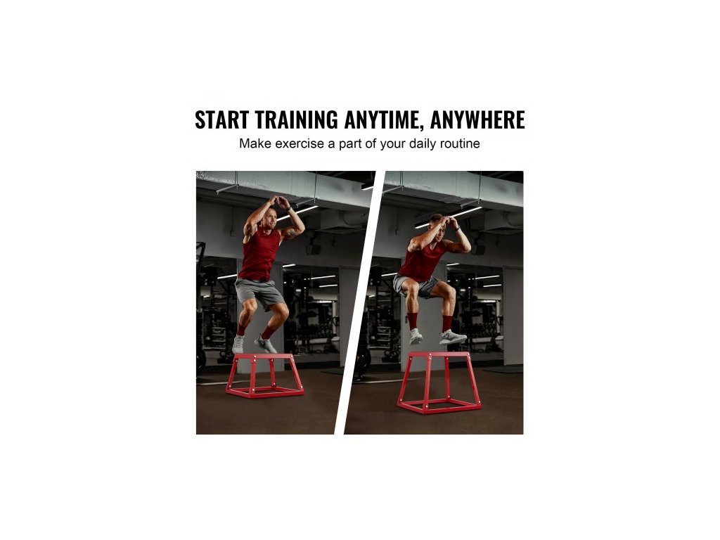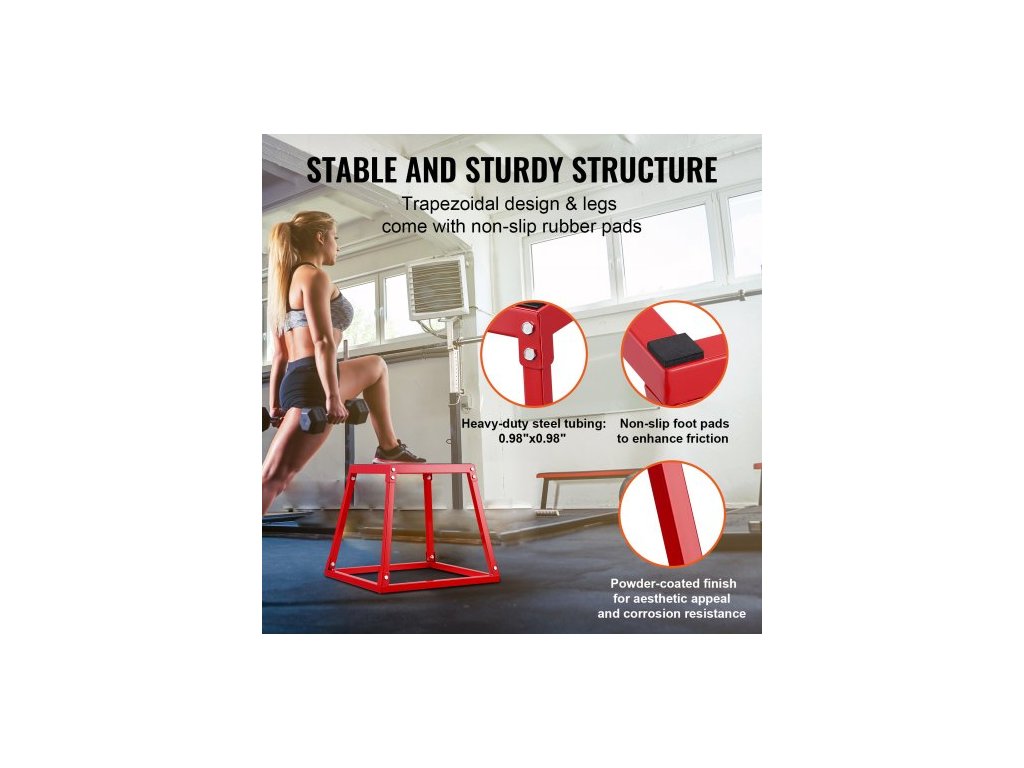 Plyometrický skákací box, 18palcový plyometrický box, ocelová plyometrická platforma a skákací box na agilitu, protiskluzový fitness cvičební box na cvičení pro domácí posilovnu, kondiční silový trénink, červený