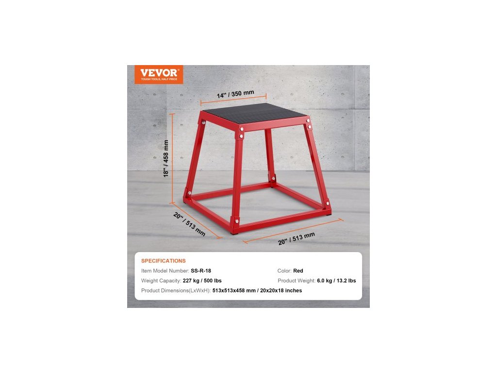 Nosnost: 227 kg / 500 liber,Barva: Červená,Číslo modelu položky: SS-R-18,Rozměry produktu (DxŠxV): 513x513x458 mm / 20,2x20,2x18 palců,Hmotnost: 6 kg / 13,2 liber