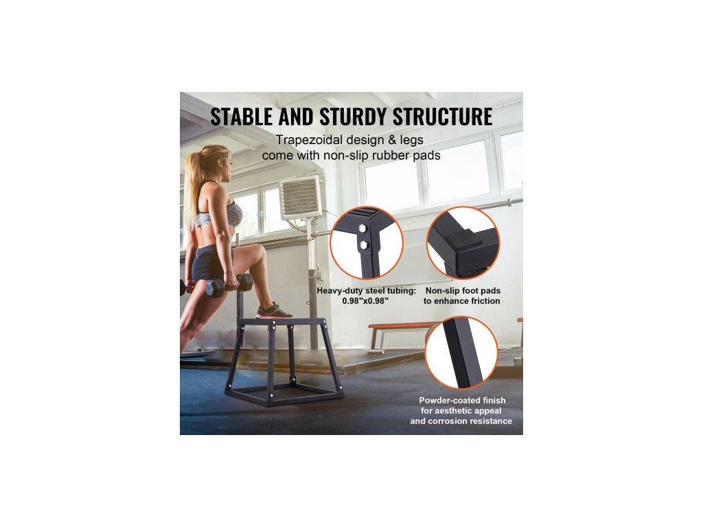 Plyometrický skákací box, 18palcový plyometrický box, ocelová plyometrická platforma a skákací box na agilitu, protiskluzový fitness cvičební box na cvičení v domácí posilovně, kondiční silový trénink, černý