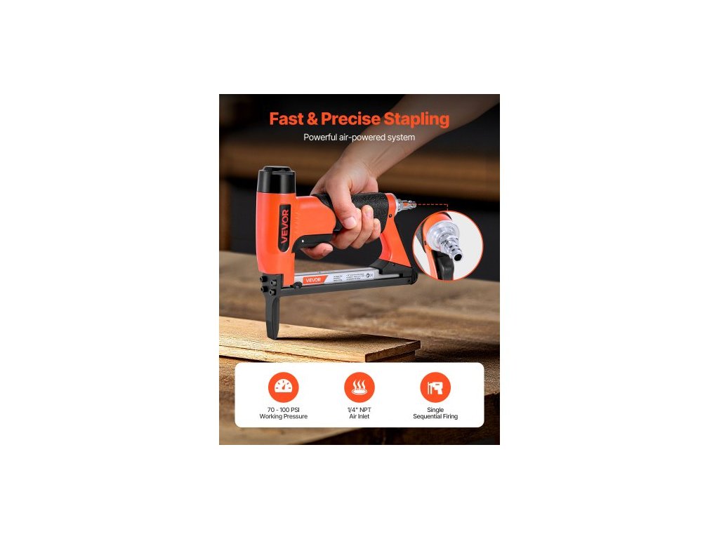 Pneumatická sešívačka , čalouněná sešívačka s dlouhým nosem o průměru 21 pro jemné drátěné sponky řady 80, korunka 12,8 mm, délka 6 mm-16 mm, max. 150 ks plnění, pneumatická sešívačka pro čalounění, práci se dřevem, kutilstvíLehké tělo