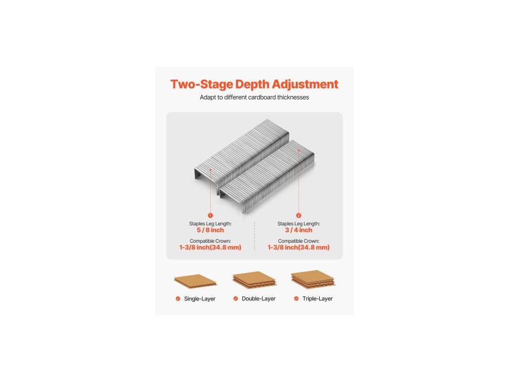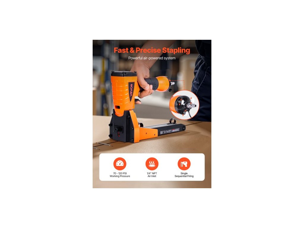 Pneumatická sešívačka na uzavírání kartonů, pneumatická sešívačka na karton o průměru 13 pro délku 34,8 mm, 16 mm a 19 mm, nastavitelná hloubka, tlak 70-120 PSI pro uzavírání kartonů a balení.