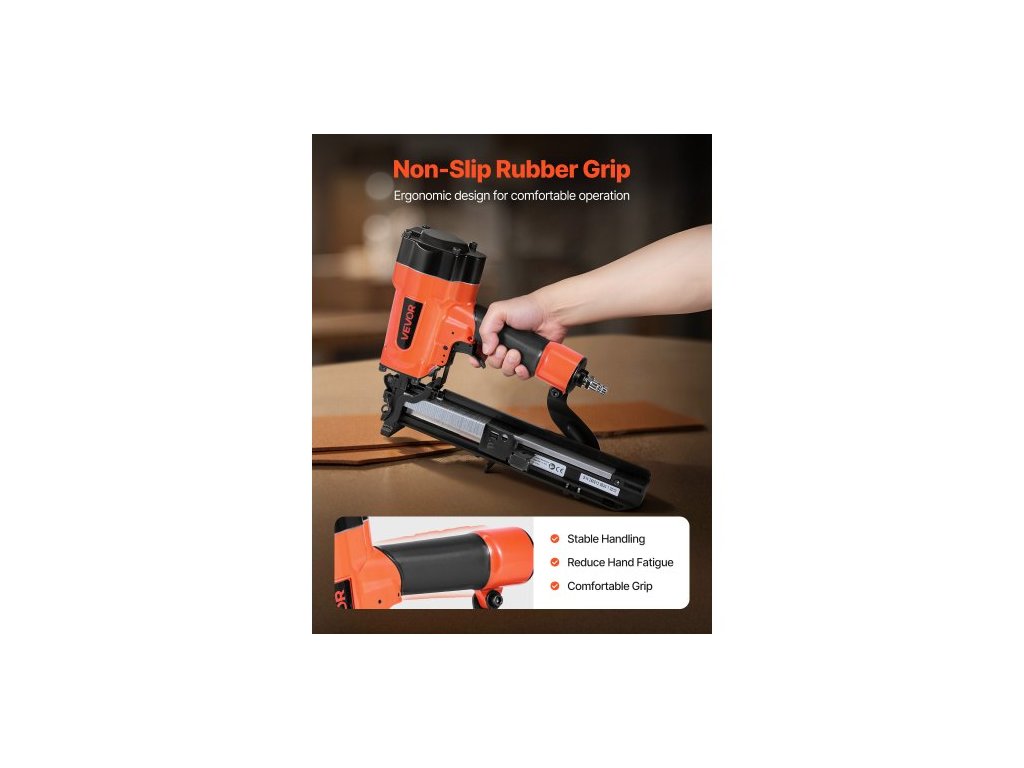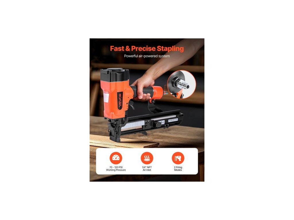 Pneumatická sponkovačka , 16 Gauge, šířka 26,4 mm, pneumatická sešívačka s korunkou, délka 16 mm až 38 mm, tlak 70-120 PSI se dvěma režimy spouštění pro střešní pláště, opláštění stěn, oplocení, podkladní podlahy
