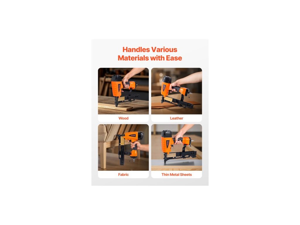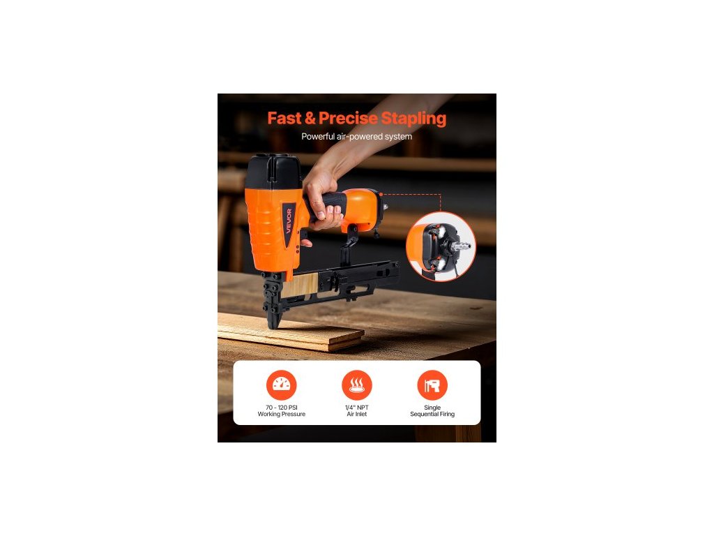 Pneumatická sešívačka , pneumatická sešívačka 16 Gauge 10,8 mm se střední korunkou, délka 25 mm až 50 mm, 70-120 PSI, vysoce odolná pneumatická sešívačka pro střešní desky, opláštění stěn, oplocení a podkladyLehké tělo