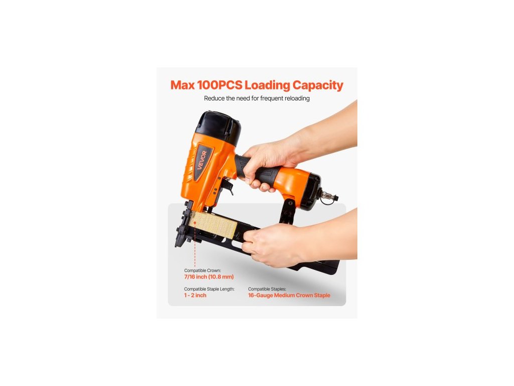 Pneumatická sponkovačka , 16 Gauge 10,8 mm, střední korunka, pneumatická sešívačka, délka 25 mm až 50 mm, 70-120 PSI, vysoce výkonná pneumatická sponkovačka pro střešní pláště, opláštění stěn, oplocení a podkladové podlahy