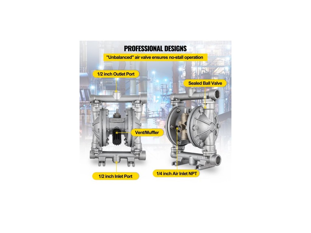 Pneumatické dvojité membránové čerpadlo , vstup a výstup, tělo z nerezové oceli, 11,36 l/min, pneumatické přečerpávací čerpadlo s PTFE membránou pro ropu, naftu, olej a kapaliny s nízkou viskozitouRobustní tělo z nerezové oceli