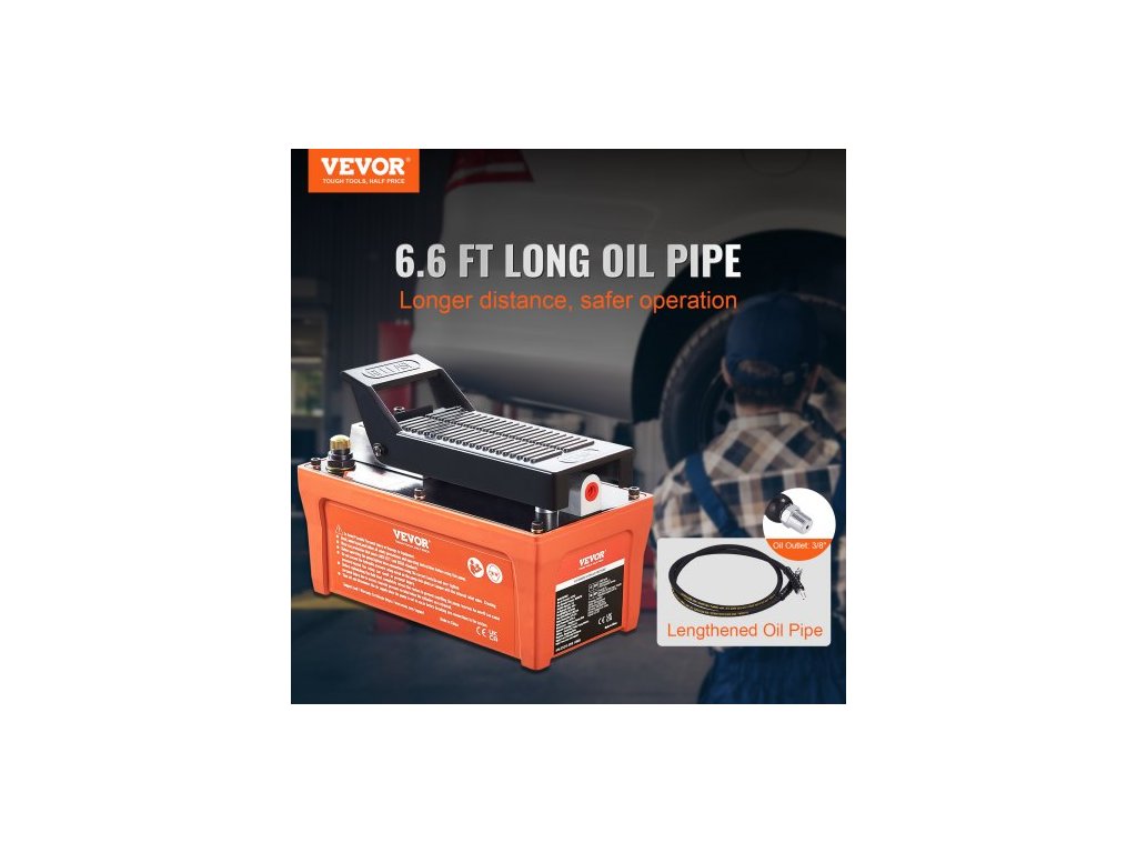 Pneumatické hydraulické čerpadlo , nádrž 6895 barů, 1,9l, výstup oleje NPT 10 mm, vstup NPT 6,4 mm, trubka 2 m, nožně ovládané hydraulické čerpadlo, vzduchový pedál pro stroje na karoserii a tažné sloupky, oranžová