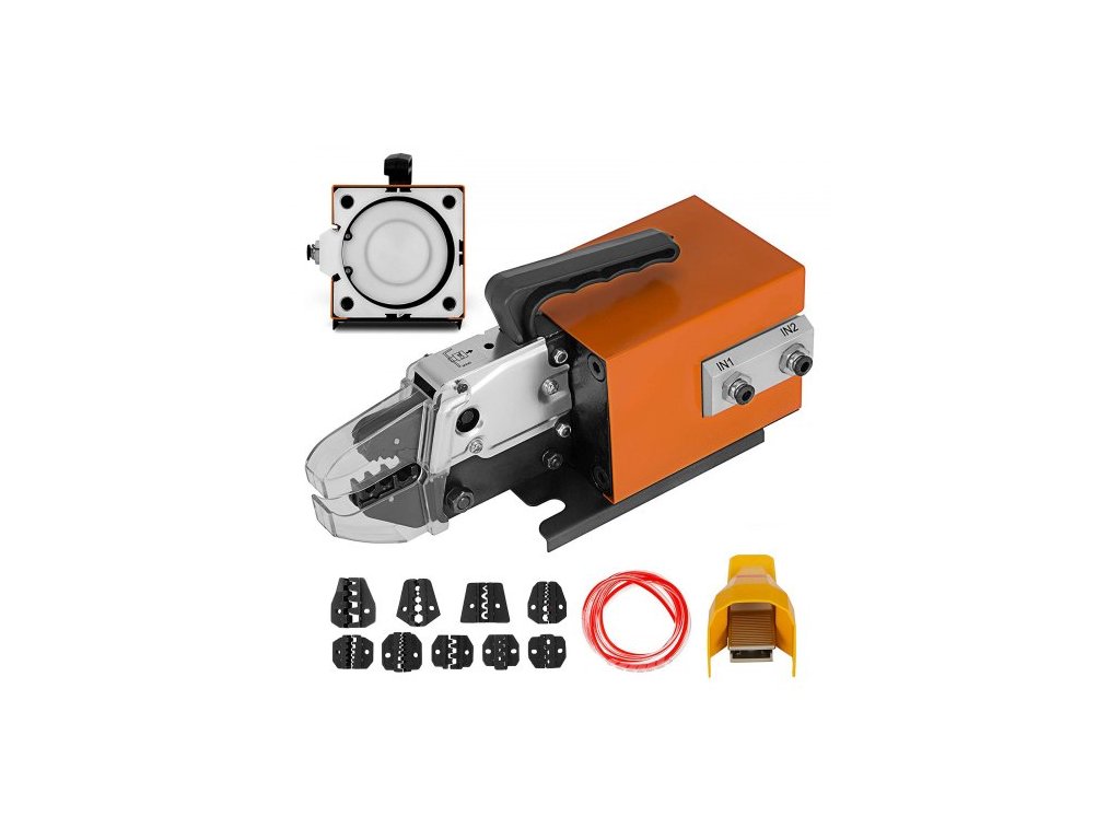 Pneumatické krimpovací kleště AM-10, pneumatický krimpovací stroj na vodičové koncovky do 16 mm2, pneumatické krimpovací kleště s 10 sadami matric pro mnoho druhů koncovek