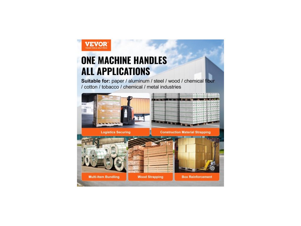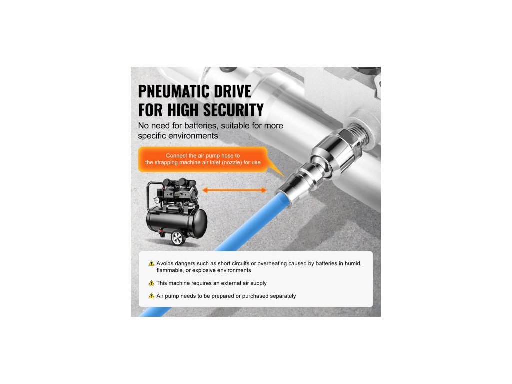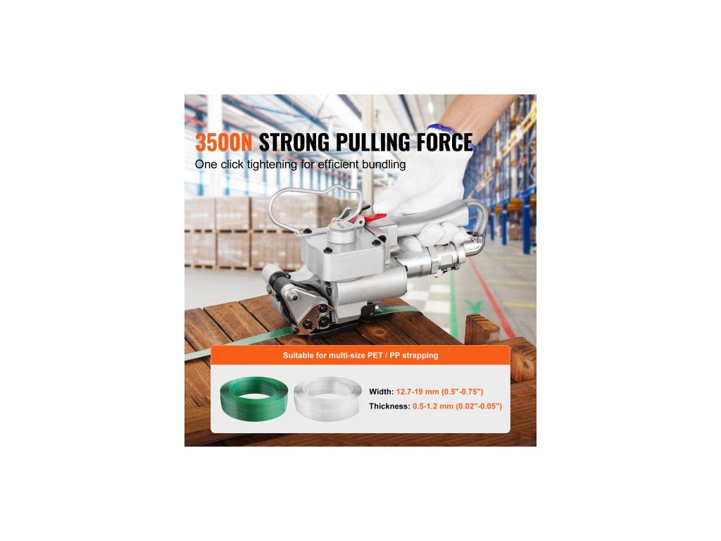 Pneumatický páskovač , pro plastové pásky 1/2"-3/4", Páskovací stroj na obaly, Ruční automatický balicí stroj s maximálním napětím 3500N, Přenosná sada pro páskování a páskováníVšestranný napříč odvětvími