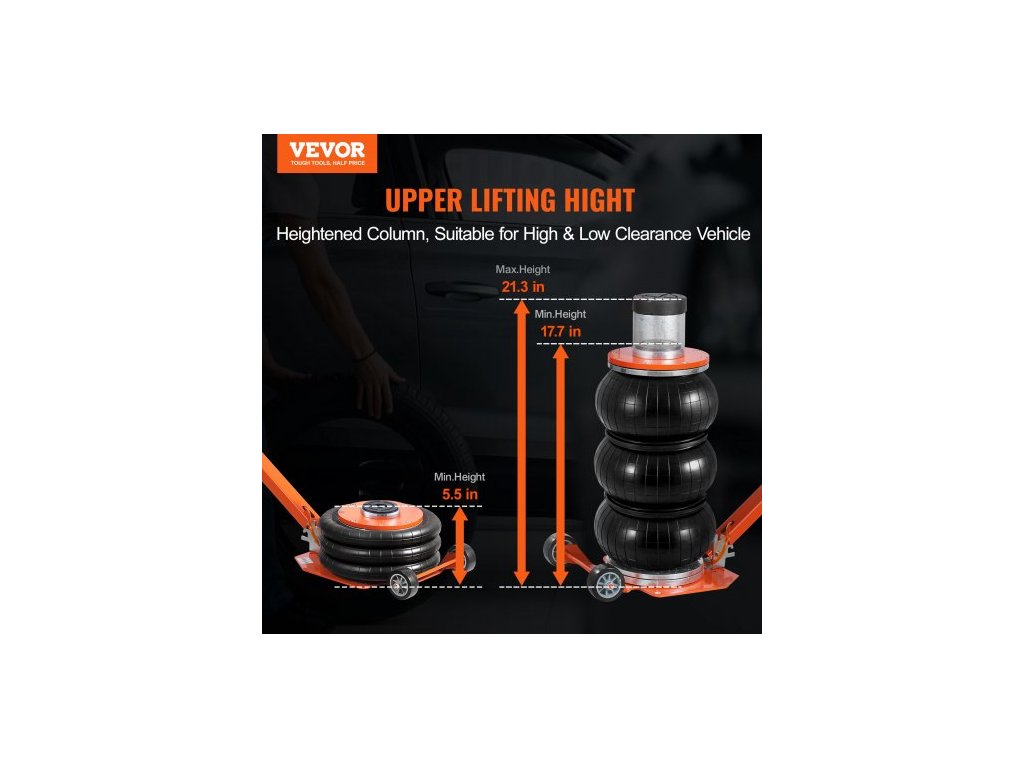 Pneumatický zvedák , 3 tuny/6600 liber, 1-6S, pneumatický zvedák se zvýšeným sloupkem a nastavitelnou rukojetí, kompaktní, snadno zvedatelný a prostorově úsporný zvedák se silnou gumovou podložkou, vhodný pro sedan, SUV, pickup