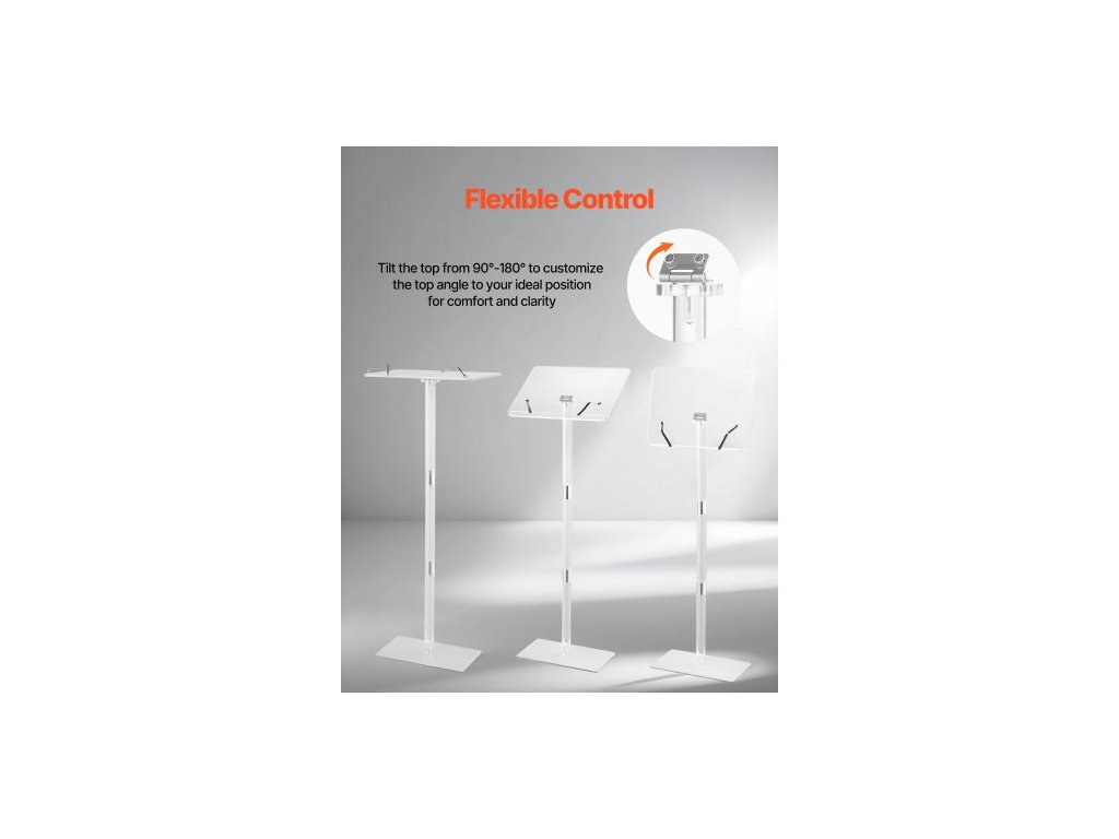 Stojan na pódium , akrylový pultík 1100 mm, přenosný stůl na notebook se širokou čtecí plochou, klipy na knihy, nastavitelný úhel, stojící na podlaze, pro učebny, svatby, konference, přednášky a koncertyErgonomický stojan na pódium