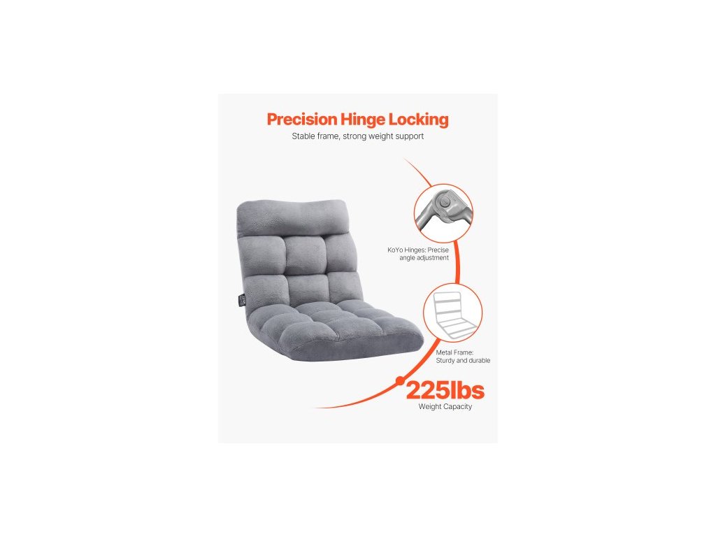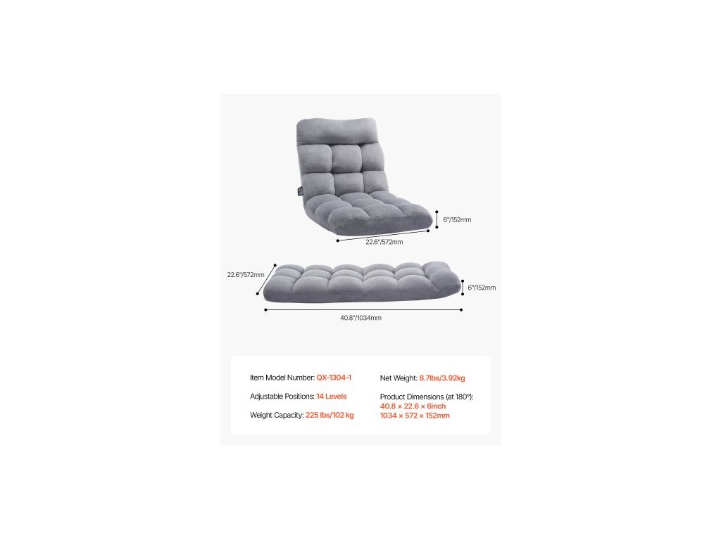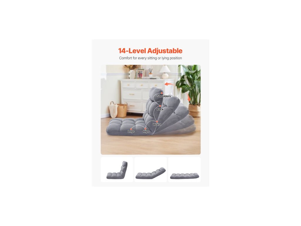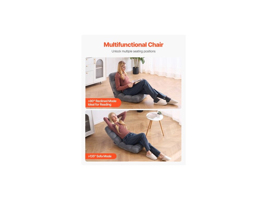 podlahová židle, skládací pohovka z recyklované pěny se 14 nastavitelnými polohami, multifunkční podlahová židle s opěrkou zad ideální pro spaní a čtení, herní podlahová židle do obývacího pokoje, šedáVíce nastavení