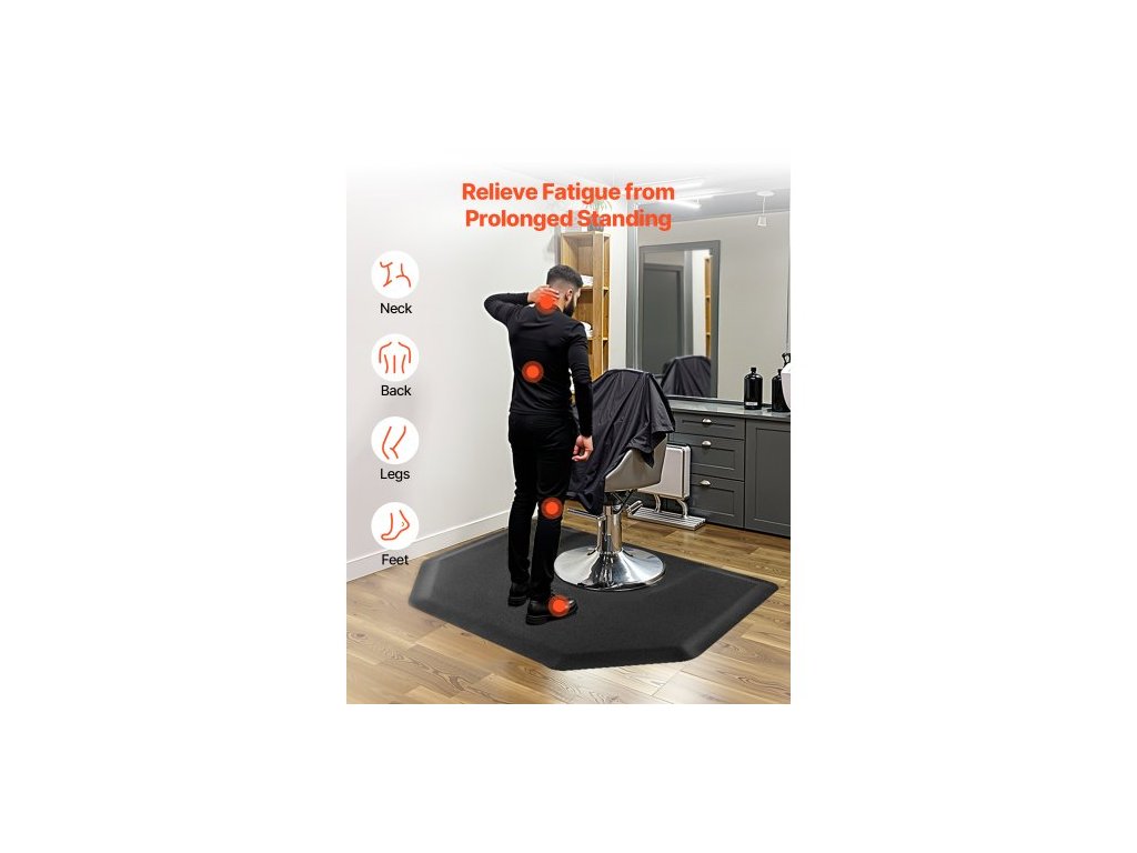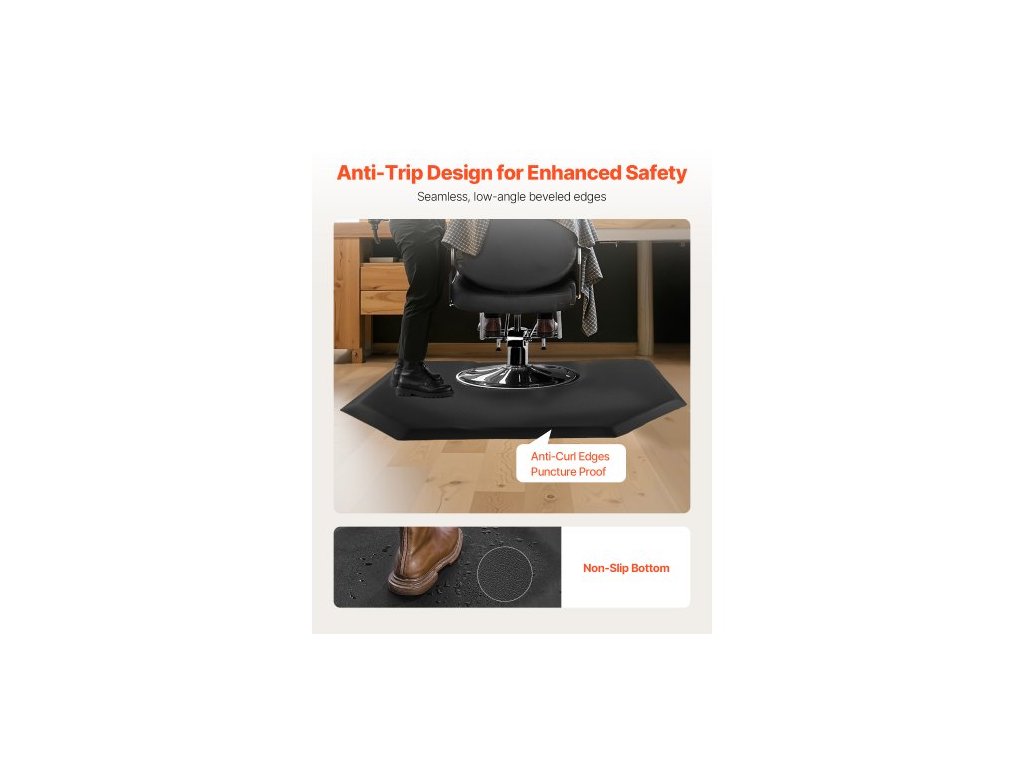 Podložka do kadeřnictví pro kadeřníky, šestihranná podložka na kadeřnické židle 1225 x 1505 mm, proti únavě, 13mm zesílená rohožka do kadeřnictví s kulatým výřezem, snadno čistitelný PVC povrch a zkosené hrany proti zakopnutíVynikající pohodlí