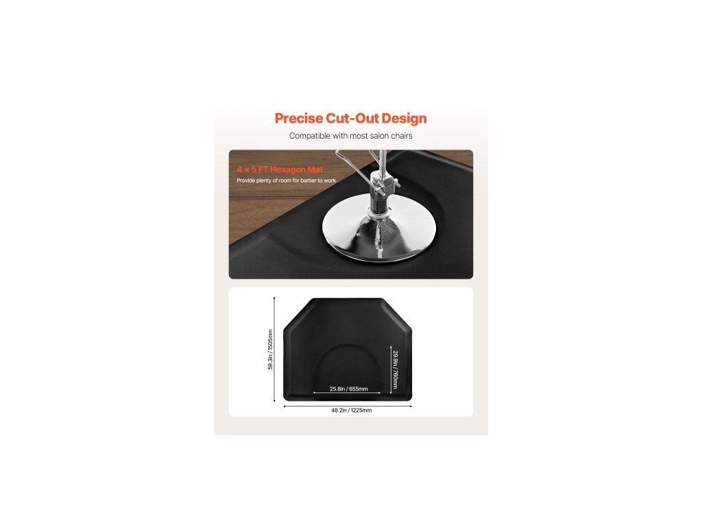 Podložka do kadeřnictví , 1225 x 1505 mm, šestihranná podložka na kadeřnické židle, proti únavě, 13mm zesílená rohožka do kadeřnictví s kulatým výřezem, snadno čistitelný PVC povrch a zkosené hrany s ochranou proti zakopnutí