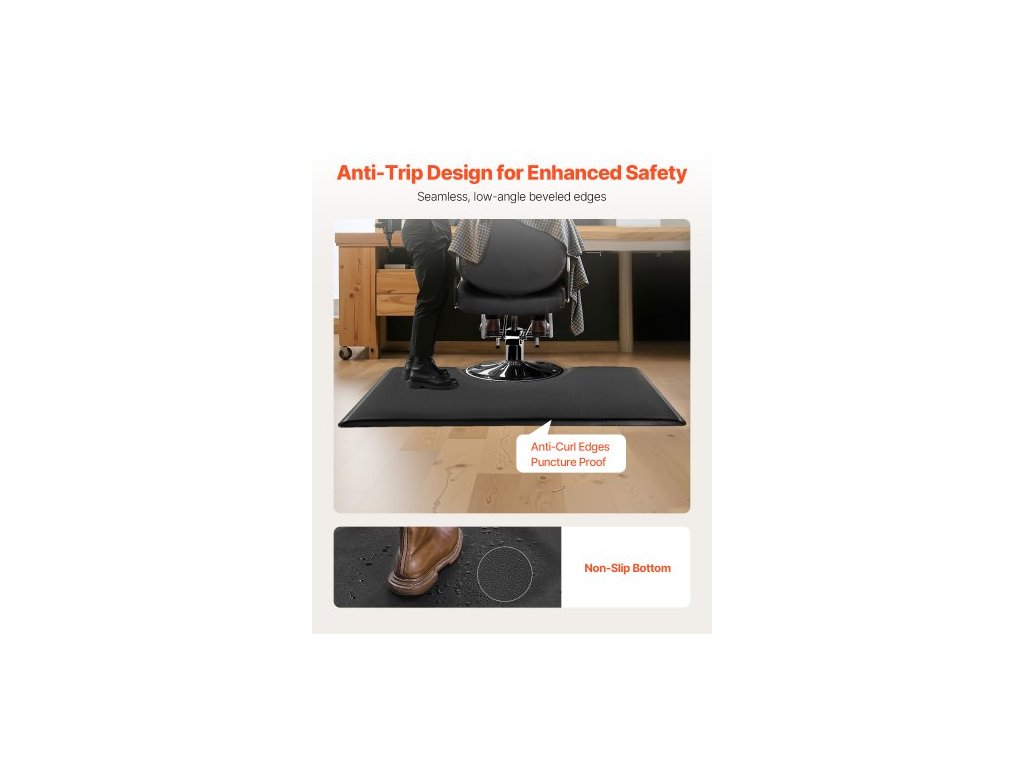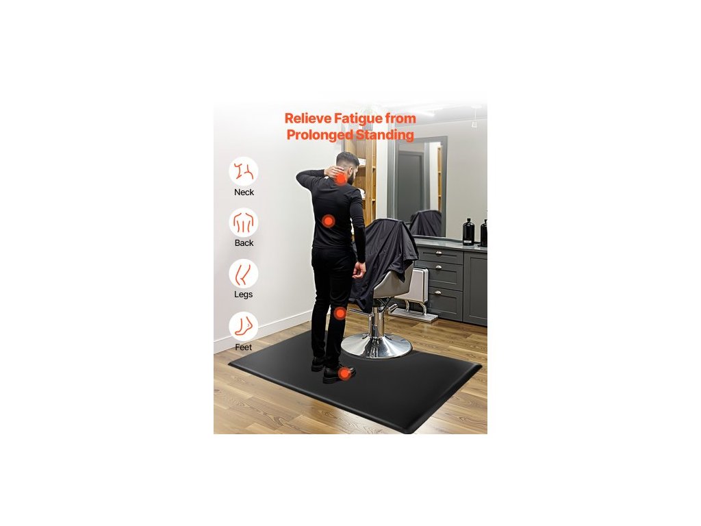 Podložka do kadeřnictví pro kadeřníky, obdélníková podložka na kadeřnické křeslo 1525 x 915 mm, proti únavě, 23mm zesílená rohožka do kadeřnictví z PVC + PU s kulatým výřezem, zkosenými hranami proti zakopnutí a protiskluzovou spodní stranouVynikající pohodlí