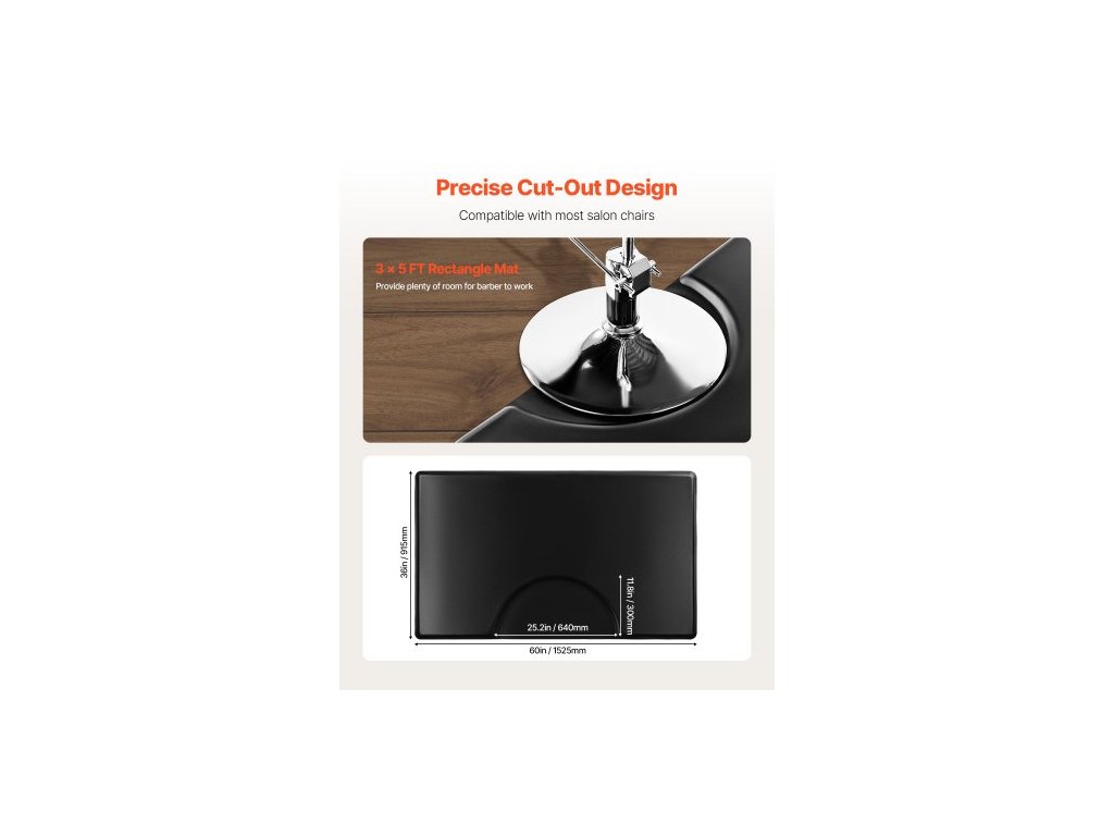 Podložka do kadeřnictví , 1525 x 915 mm, obdélníková podložka na kadeřnické židle, proti únavě, 23 mm zesílená PVC + PU rohožka do kadeřnictví s kulatým výřezem, zkosené hrany s ochranou proti zakopnutí a protiskluzová spodní strana