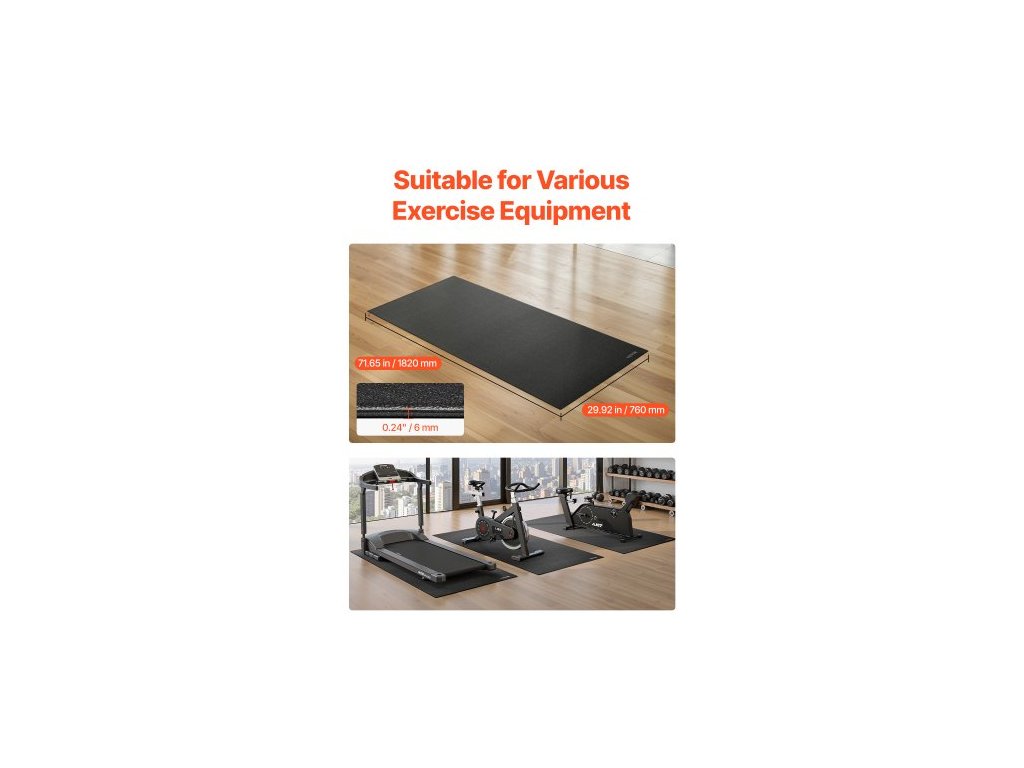 Podložka na běžecký pás na koberec, tloušťka 6 mm, 760x1820 mm, podložka na cvičební zařízení pro běžecké pásy, stacionární trenažéry, lehokola, ochrana podlahy z PVC s vysokou hustotou, vodotěsná a protiskluzová pro domácí posilovnuPodložka na cvičební zařízení