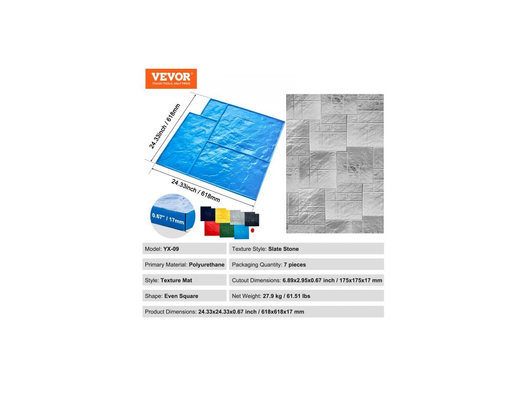Podložka na razítka z betonu, 24 x 24 palců, 7 ks, Texturující betonová vrstva, polyuretanová razítka, texturovaná podložka na kamenné dlaždice, otisk břidlicové podlahy, bezešvé razítko, betonové formy pro venkovní dekorace, vícebarevné