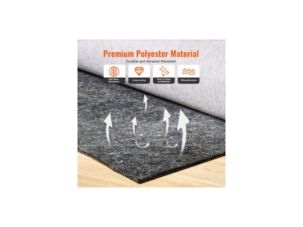 Podložka pod koberec bez protiskluzové úpravy, ochranná polstrovaná podložka pod koberec, 8' x 10', 1/4" silná, 100% čistá polyesterová plsť, 7-8㎡ prémiová pohodlná podložka pod koberec pro všechny podlahy, šedáSilná a odolná