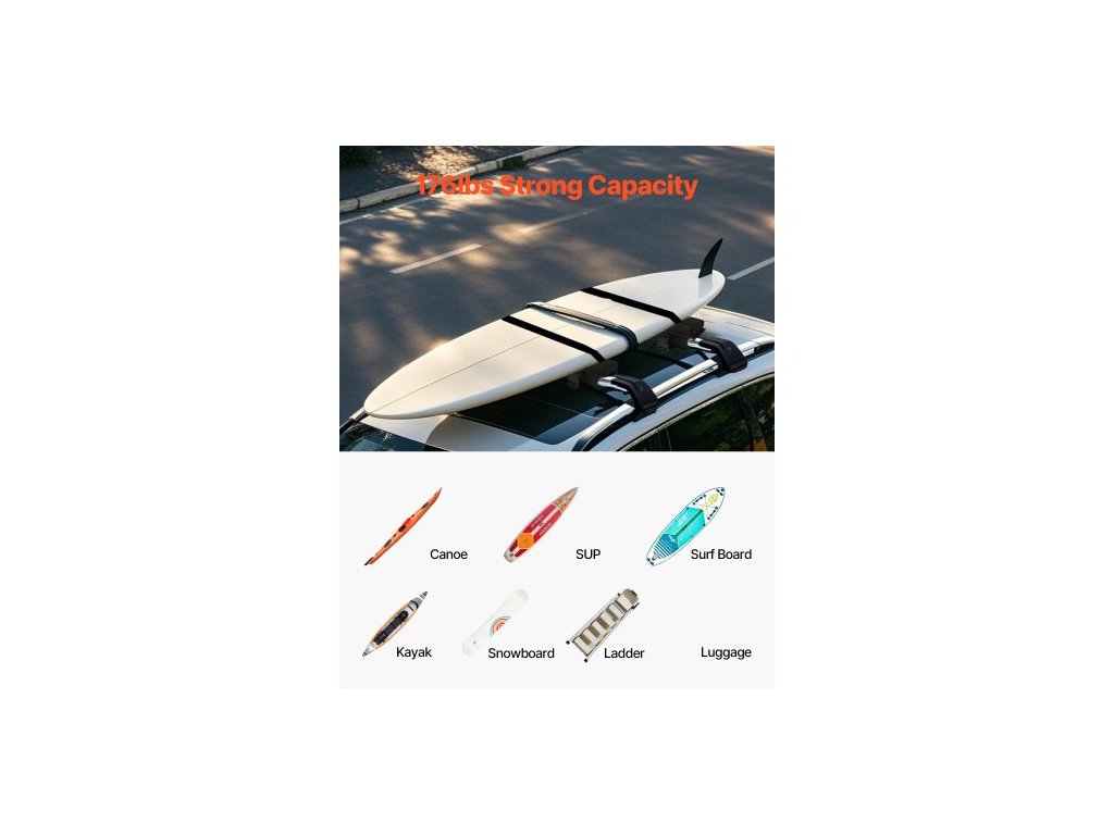podložky pod měkký střešní nosič, univerzální podložka pod střešní nosič o průměru 30" pro různé příčníky, nosič zavazadel a kajaku s nosností 176 liber, 2 upevňovacími popruhy, 2 rychloupínacími popruhy a úložným vakem pro SUP, kánoi, snowboard...