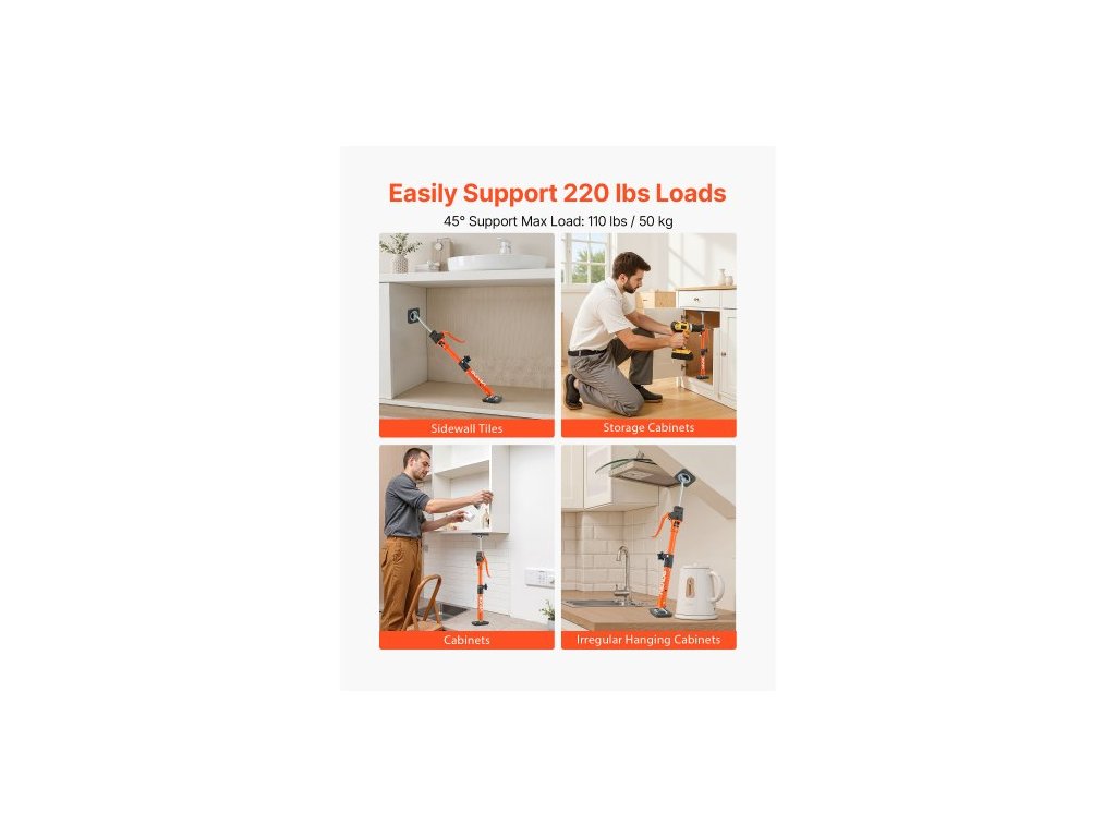 Podpěrná tyč pro zvedák skříněk, balení 2 kusů, ocelová teleskopická rychloupínací tyč 40-60 cm, nastavitelný systém třetí ruky s nosností až 100 kg pro instalaci skříněk, zvedání sádrokartonu, nákladové tyče