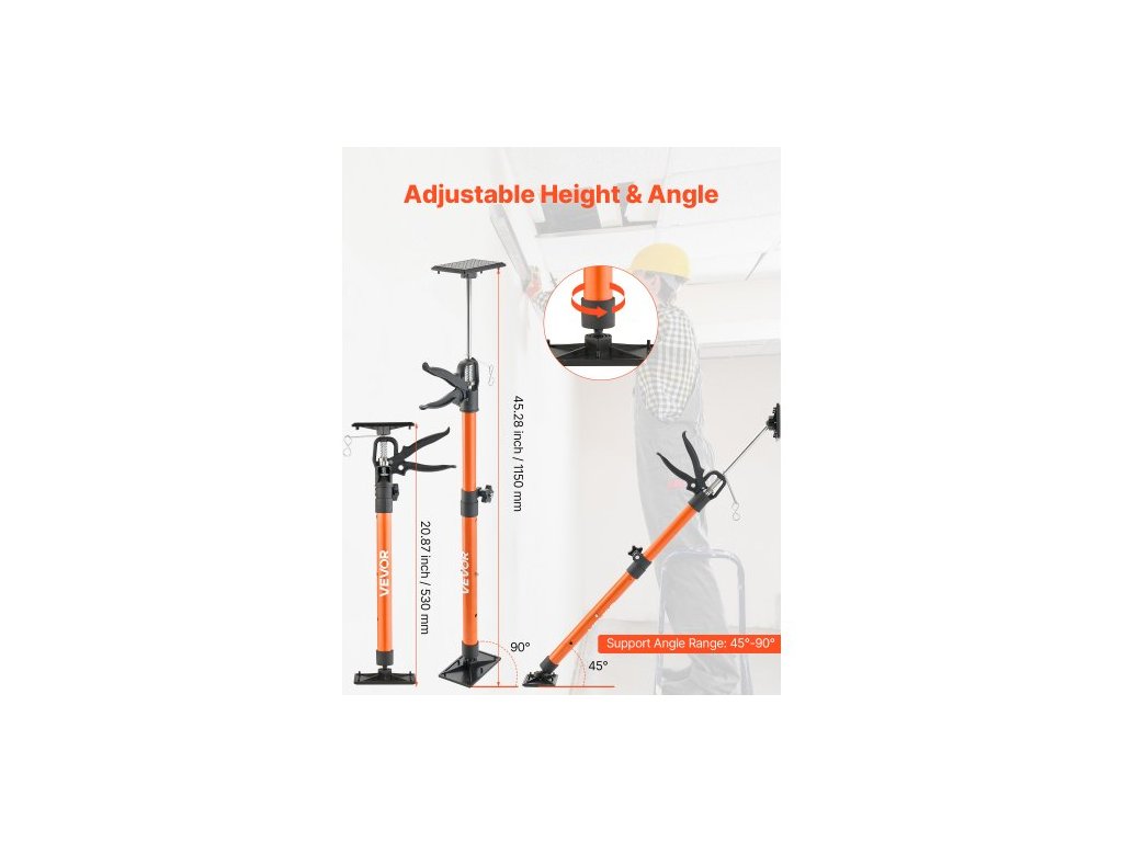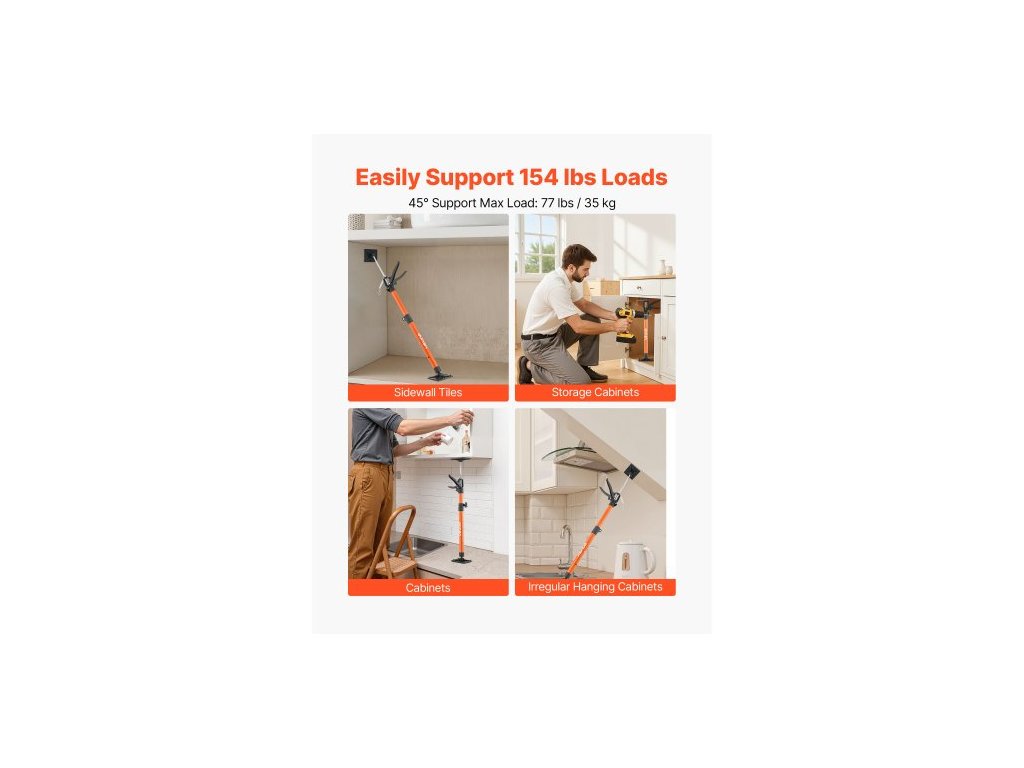 Podpěrná tyč pro zvedák skříněk, balení 2 ks, ocelová teleskopická rychlopodpěrná tyč 54-155 cm, nastavitelný systém třetí ruky s nosností až 70 kg pro instalaci skříněk, zvedání sádrokartonu, nákladových tyčíVšestranná opora