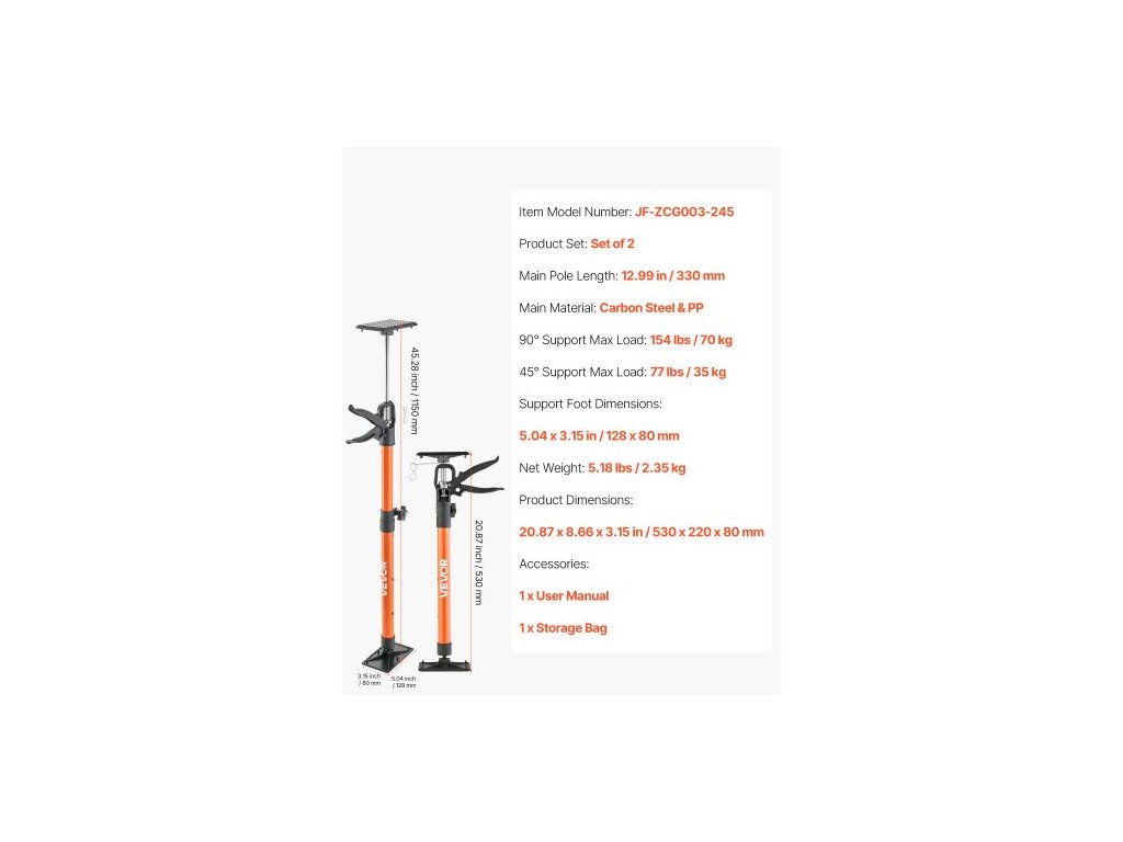 Rozměry podpěrné nohy: 5,04 x 3,15 palce / 128 x 80 mm,Číslo modelu položky: JF-ZCG003-245,Sada produktu: Sada 2 ks,Délka hlavní tyče: 12,99 palce / 330 mm,Rozměry produktu: 20,87 x 8,66 x 3,15 palce / 530 x 220 x 80 mm,Čistá hmotnost: 5,18 lbs / 2,35 kg,Hlavní materiál: Uhlíková ocel a PP