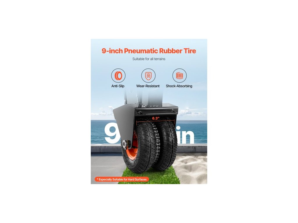 podvozek pro přívěs, nosnost 227 kg, výškově nastavitelná plošina pro přesun přívěsu 33,5–61,2 cm, pneumatická pneumatika 23,7 cm, ruční nebo elektrický pohon klíčem, pro přesun obytného přívěsu