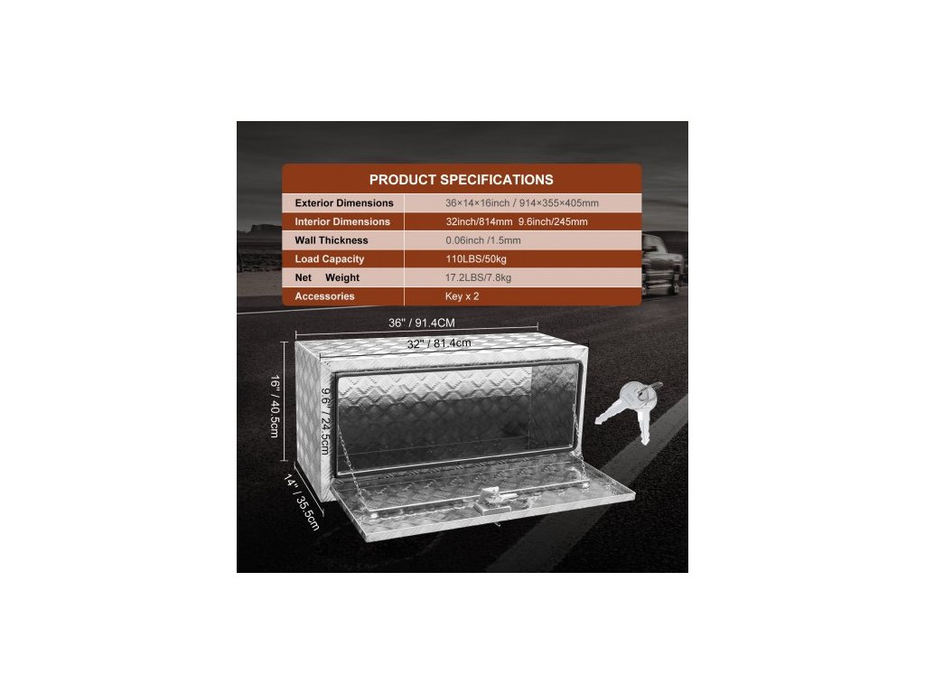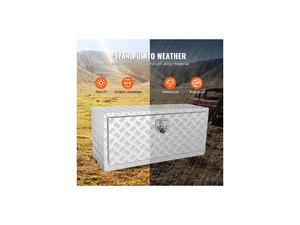 Podvozkový box na nákladní automobil, úložný box na pick-up 914 x 355 x 405 mm, odolný hliníkový box na nářadí s diamantovým plechem a zámkem a klíči, vodotěsný úložný box na přívěs s T-rukojetí pro nákladní automobily, dodávky a přívěsyIdeální pro všechny nákladní automobily