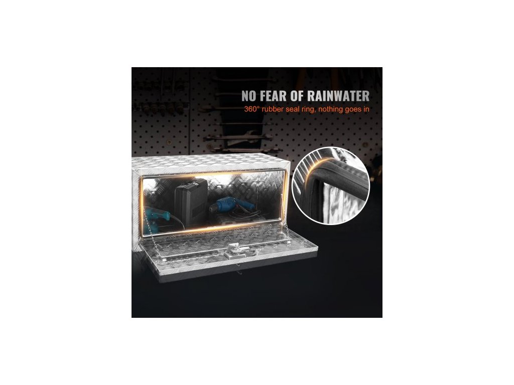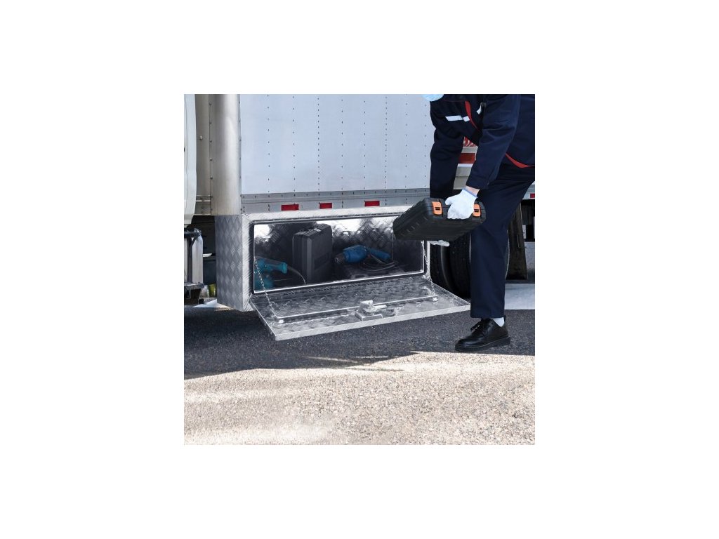 Podvozkový box na nákladní automobil, úložný box na pickup 914 x 355 x 405 mm, odolný hliníkový box na nářadí s diamantovým plechem se zámkem a klíči, vodotěsný úložný box na přívěs s T-rukojetí pro nákladní automobil, dodávku, přívěs